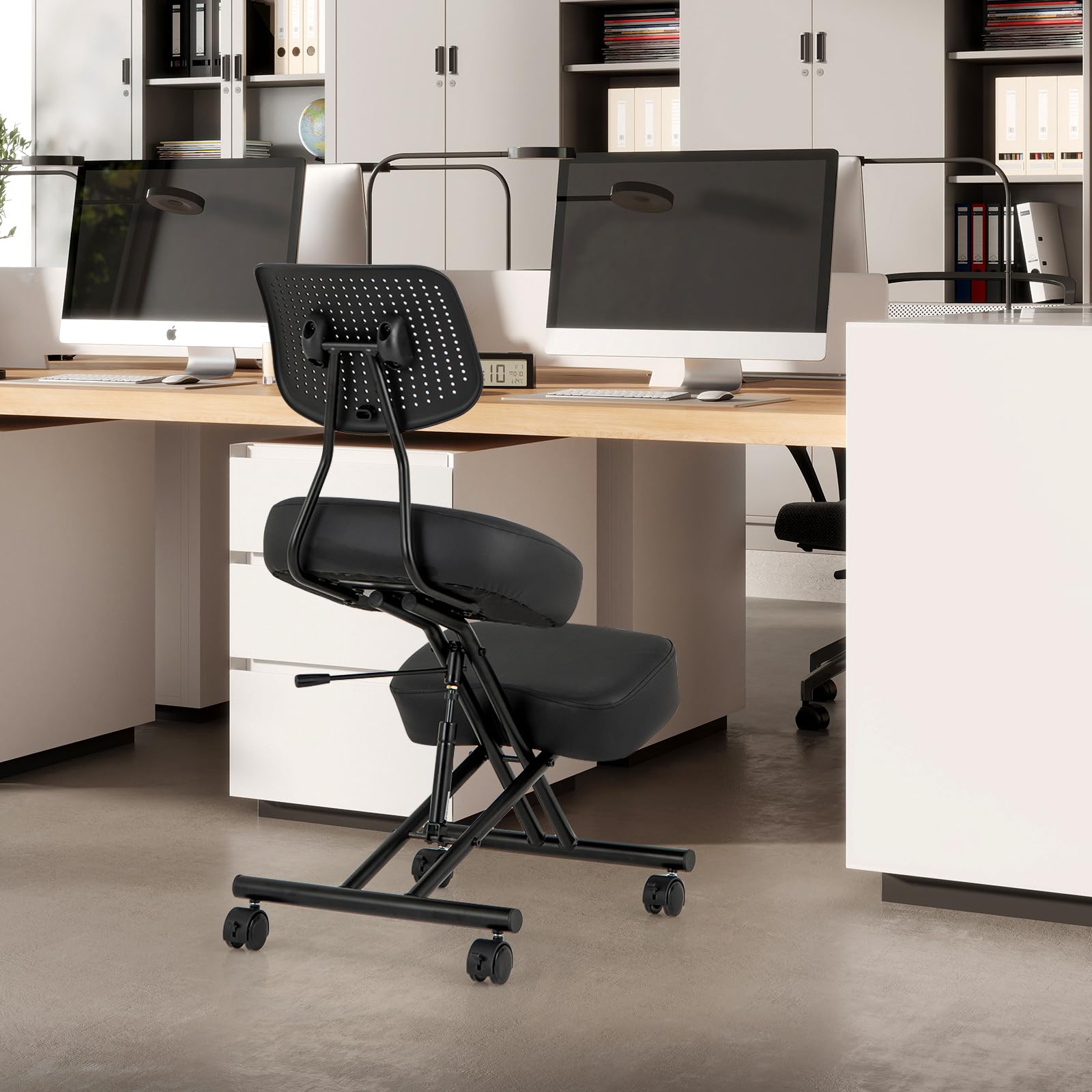 Prioritizing Posture and Health: Equipped with a contoured backrest, the ergonomic kneeling chair alleviates back pain and corrects detrimental posture habits like slouching or leg crossing. Moreover, the knee support redistributes weight from the lower back to the hips and legs, creating a balanced seating position.