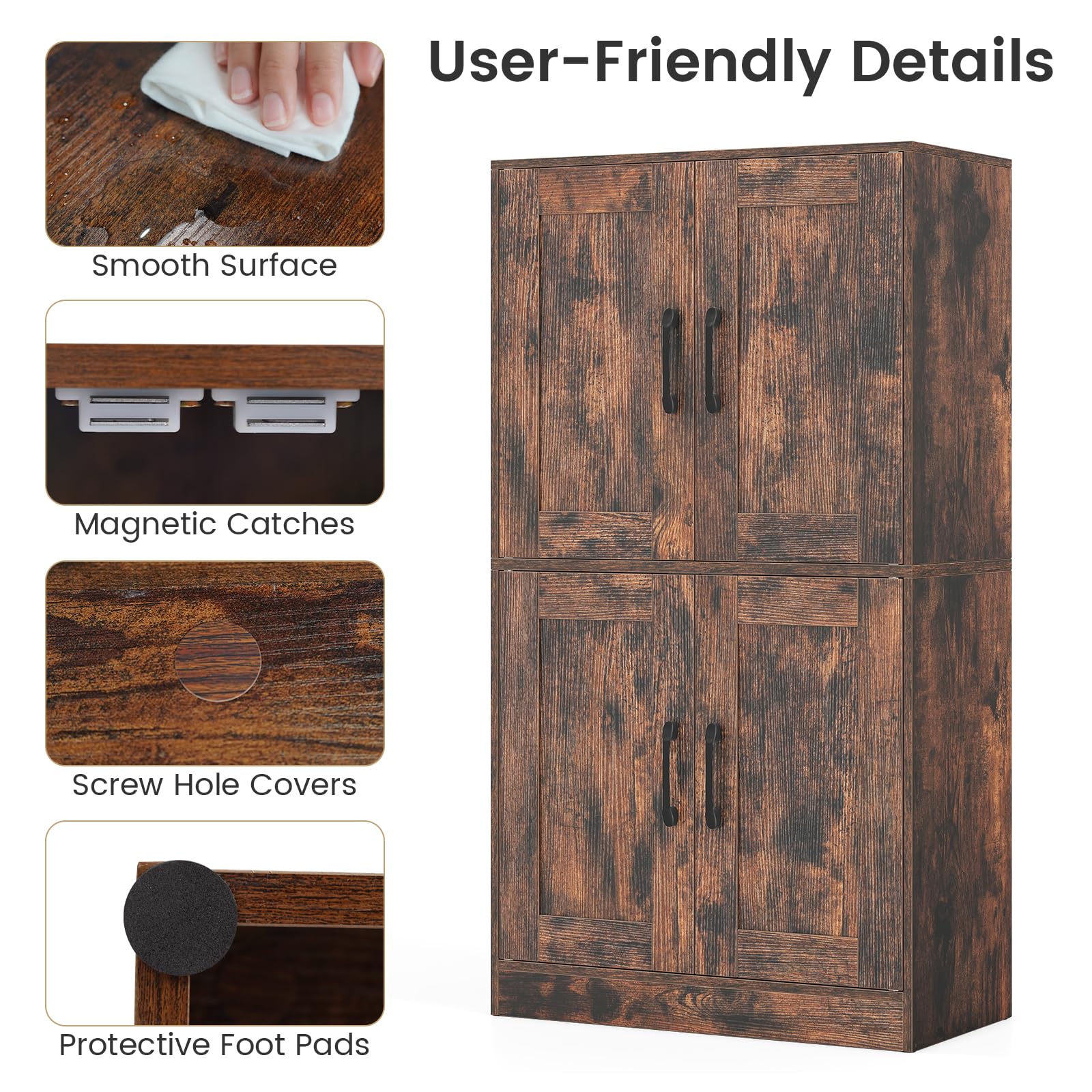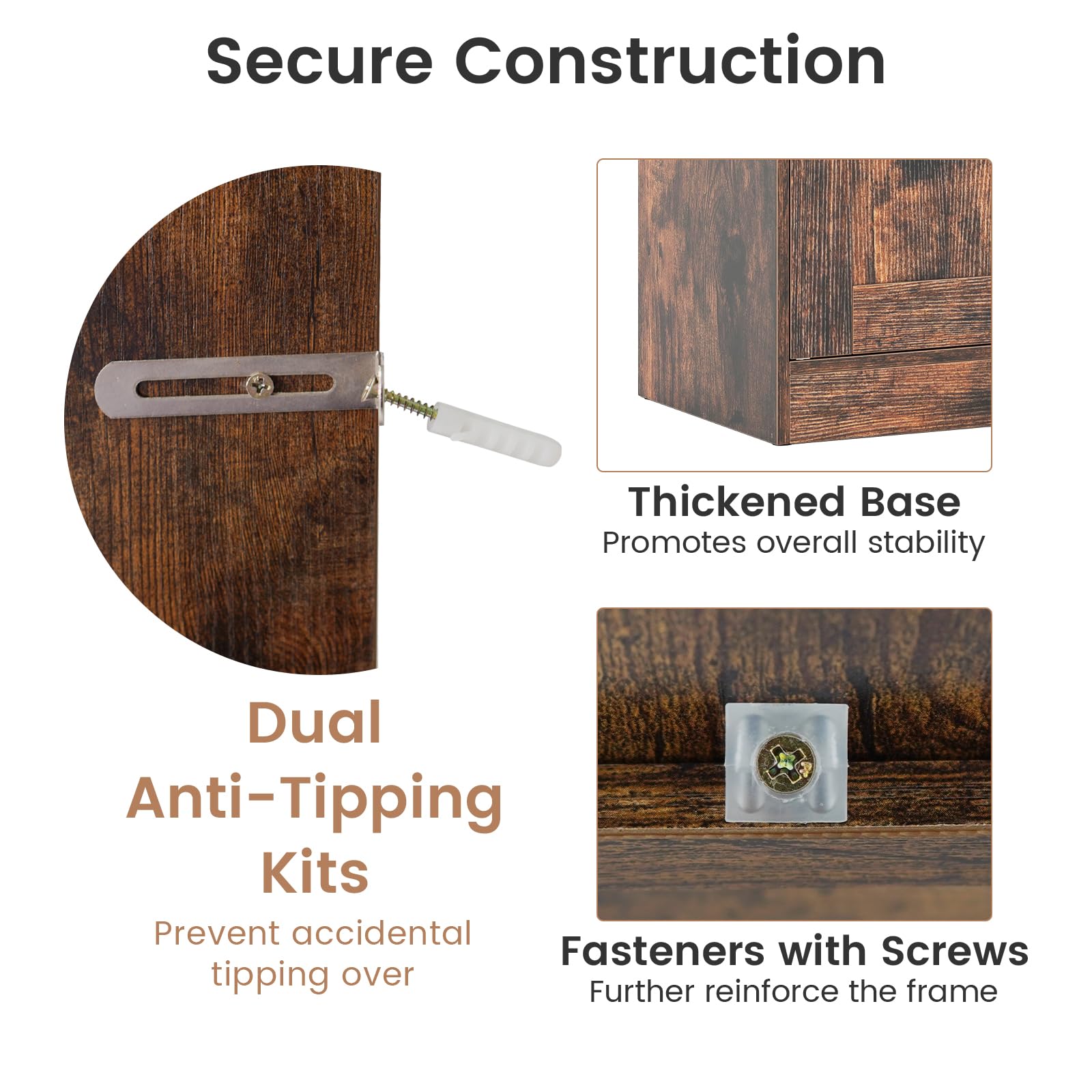 Designed for safety, it features 2 anti-toppling devices that secure the unit firmly, preventing accidental falls. Its stylish look is enhanced by screw hole covers and clean lines. Ideal for use in bathrooms, bedrooms, kitchens, or living areas, this floor cabinet adapts effortlessly to your storage needs. Moreover, the bathroom cabinet is designed with more thoughtful details, like sturdy metal handles, magnetic catches, and non-slip foot pads to protect your floors.