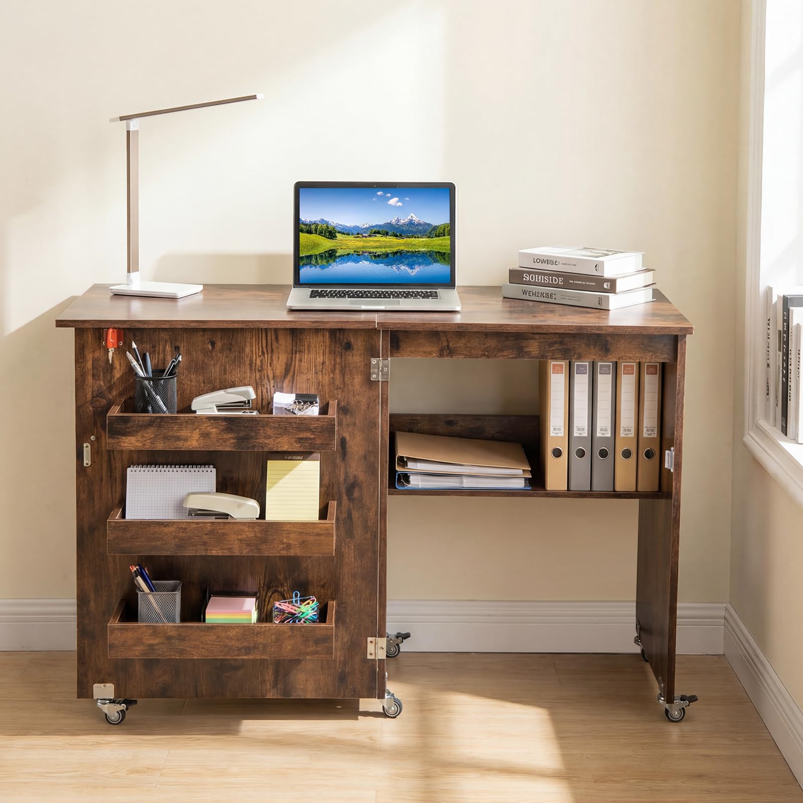 Folding Design & Versatile Use: This folding sewing table transforms easily into a computer desk or side table, capable of catering to your various work or crafting needs. When not in use, you can simply fold the table to free up space.