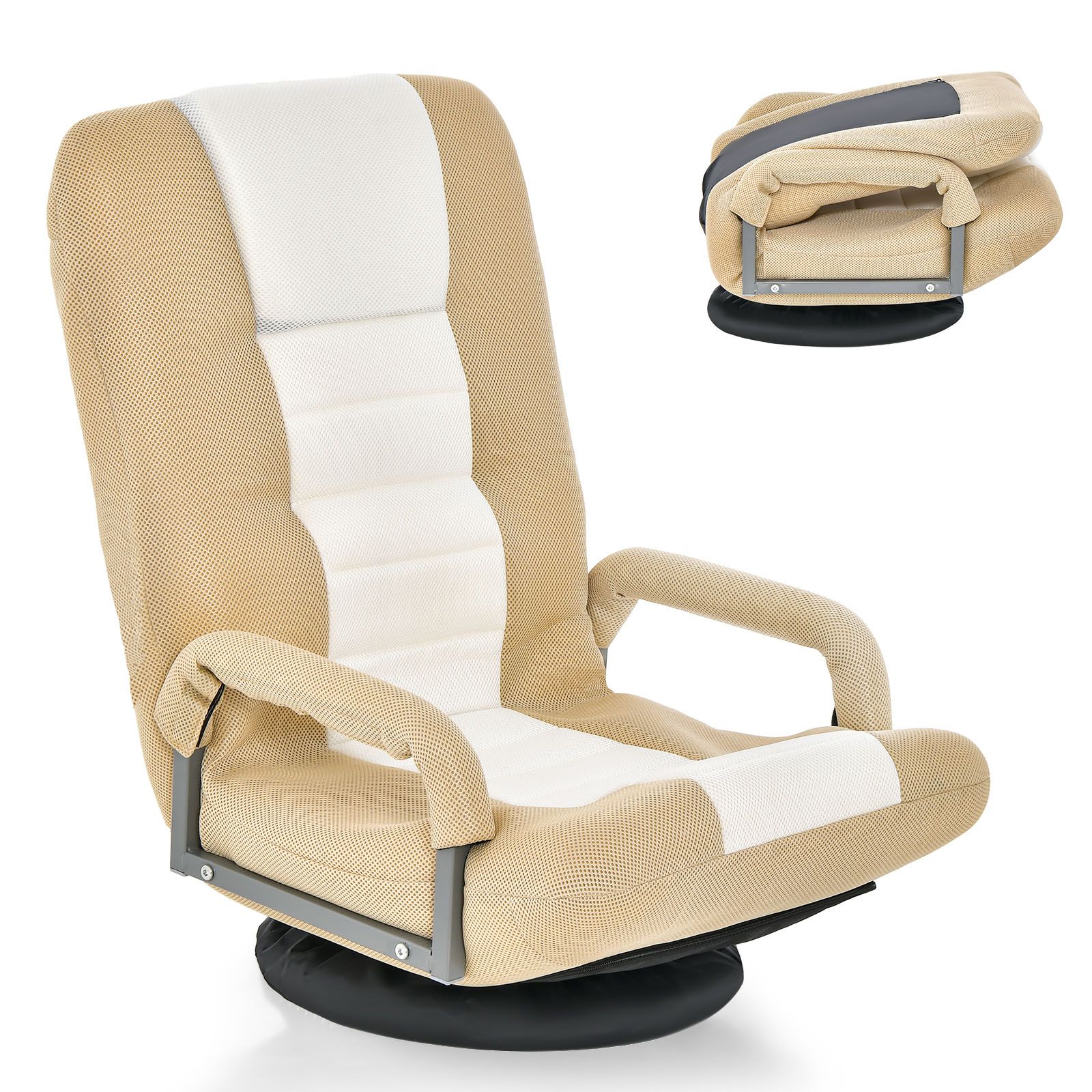 Folding sofa chair, 360 degree swivel lazy floor sofa with 6-position adjustable backrest