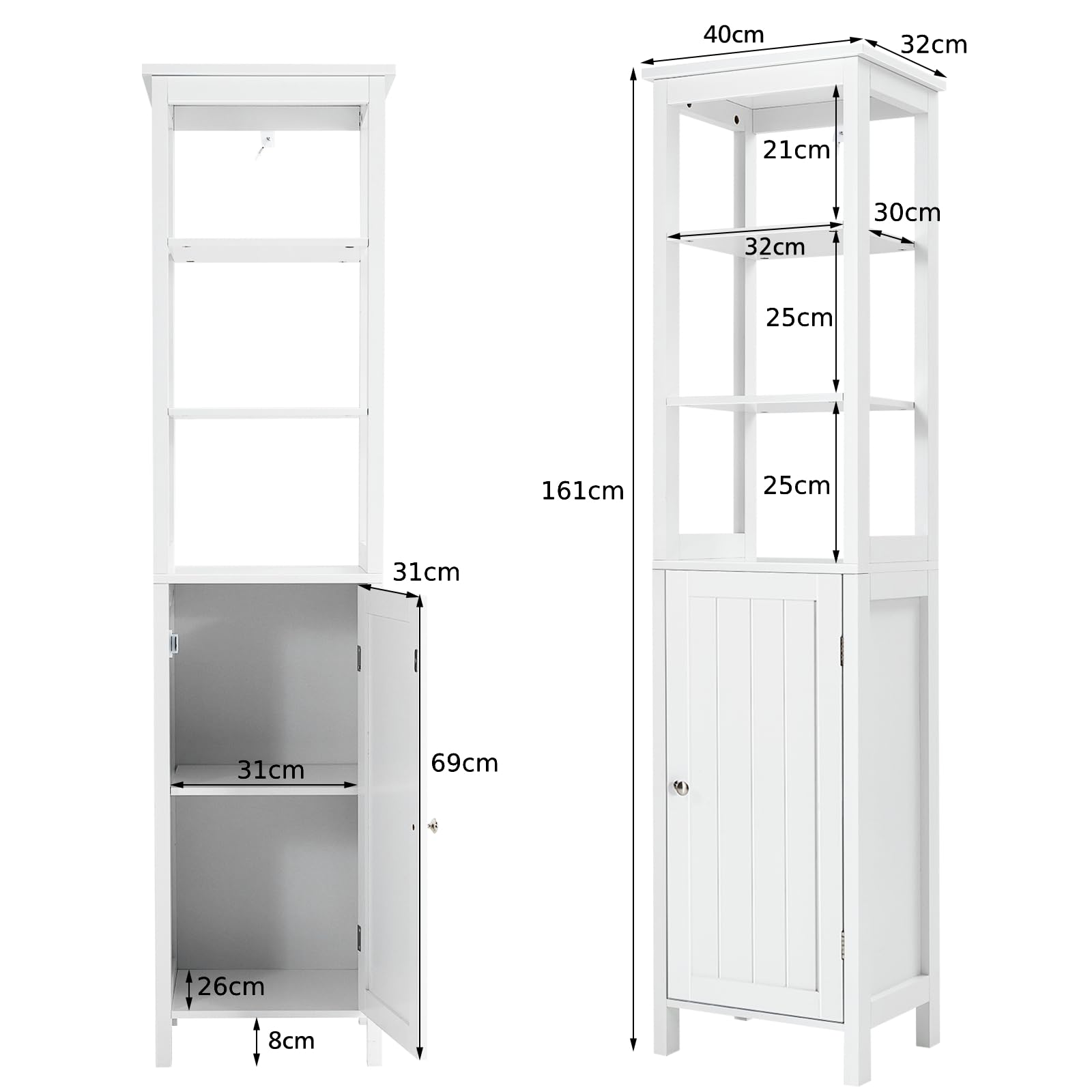 Sufficient Storage Space: This free-standing tower comes with two parts, the upper 3-tier open rack and the lower cabinet with door, offers you with ample space to order storage and partitioned organization. Considering about easy access and personal privacy protection, this floor cabinet will meet all your daily needs.