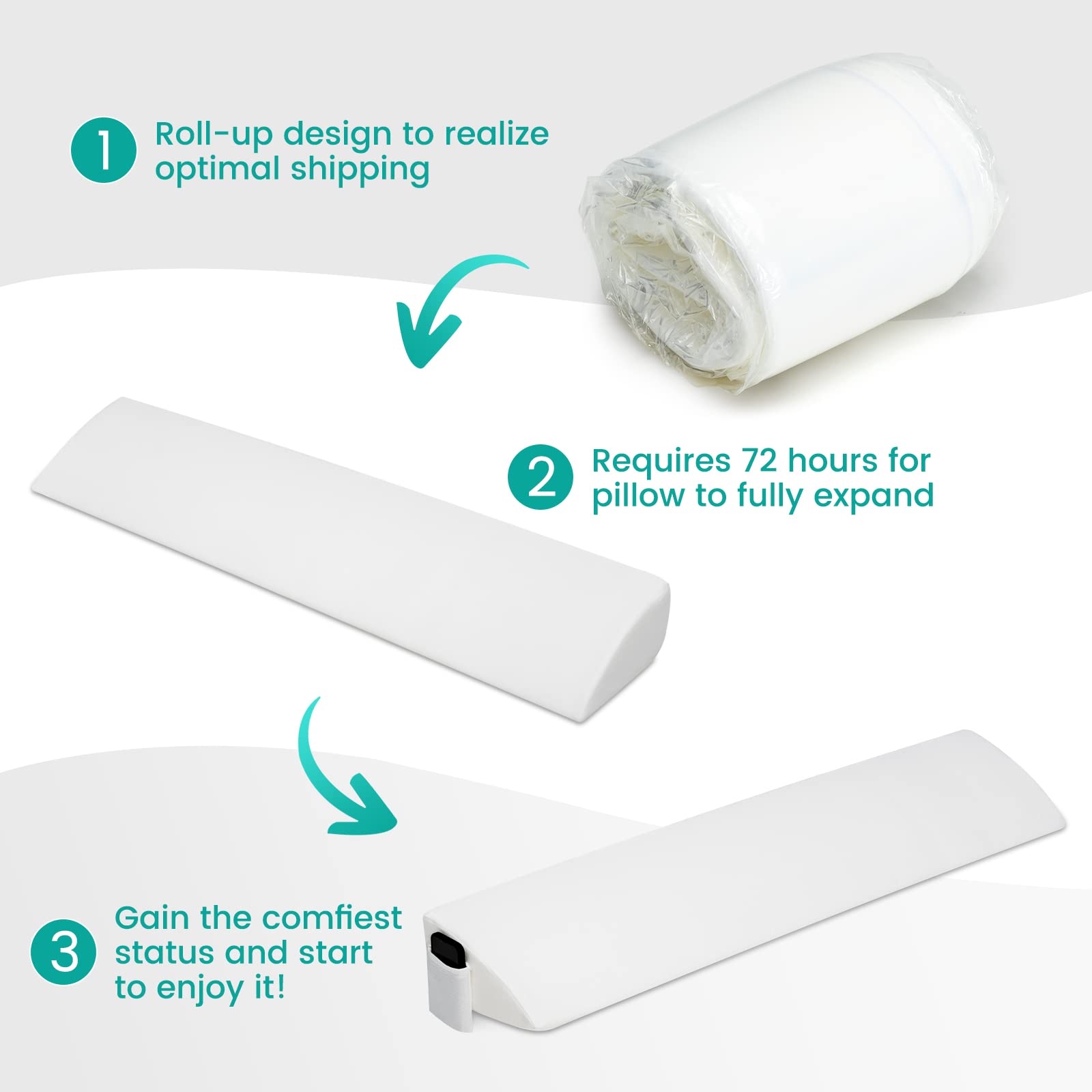 No Need for Assembly: For the easy delivery, the full/queen size bed gap filler will be rolled up into a compact size. After unboxing the package, it requires no extra installation, but you need to wait for about 72 hours until the foam mattress wedge pillow expands to its fluffiest state.