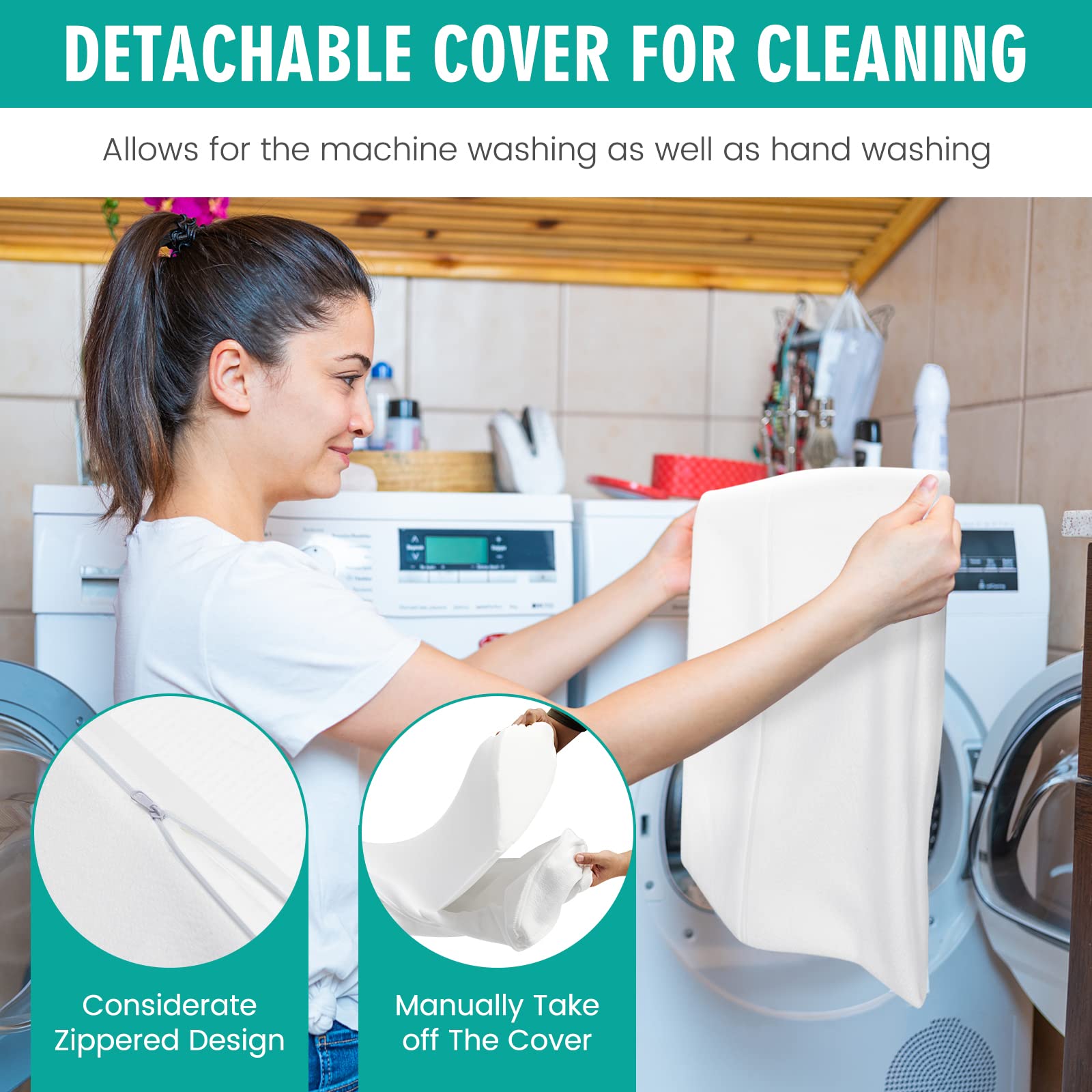 Ergonomic Arched Design: A side of the triangle bolster pillow is purposely designed to be arching, intending to match the curve of your neck and reduce the physical pressure. More, the exterior cover, made of skin-friendly polyester, is zippered and can be removable for quick hand washing as well as machine washing.