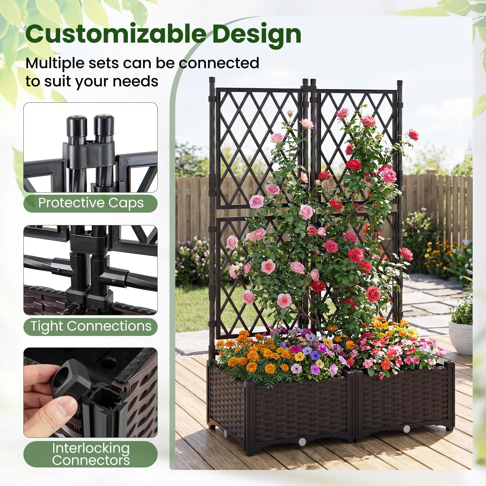 Comes with vertical lattice trellises, provide vertical growth, save valuable space