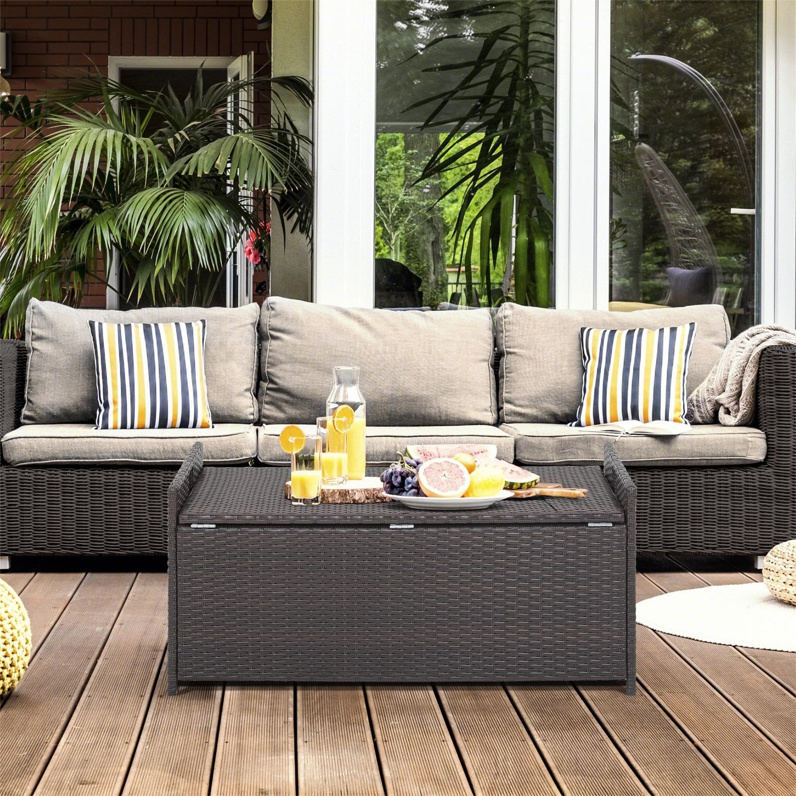 Giantexuk 128l garden storage box, weatherproof rattan deck box with seat cushion