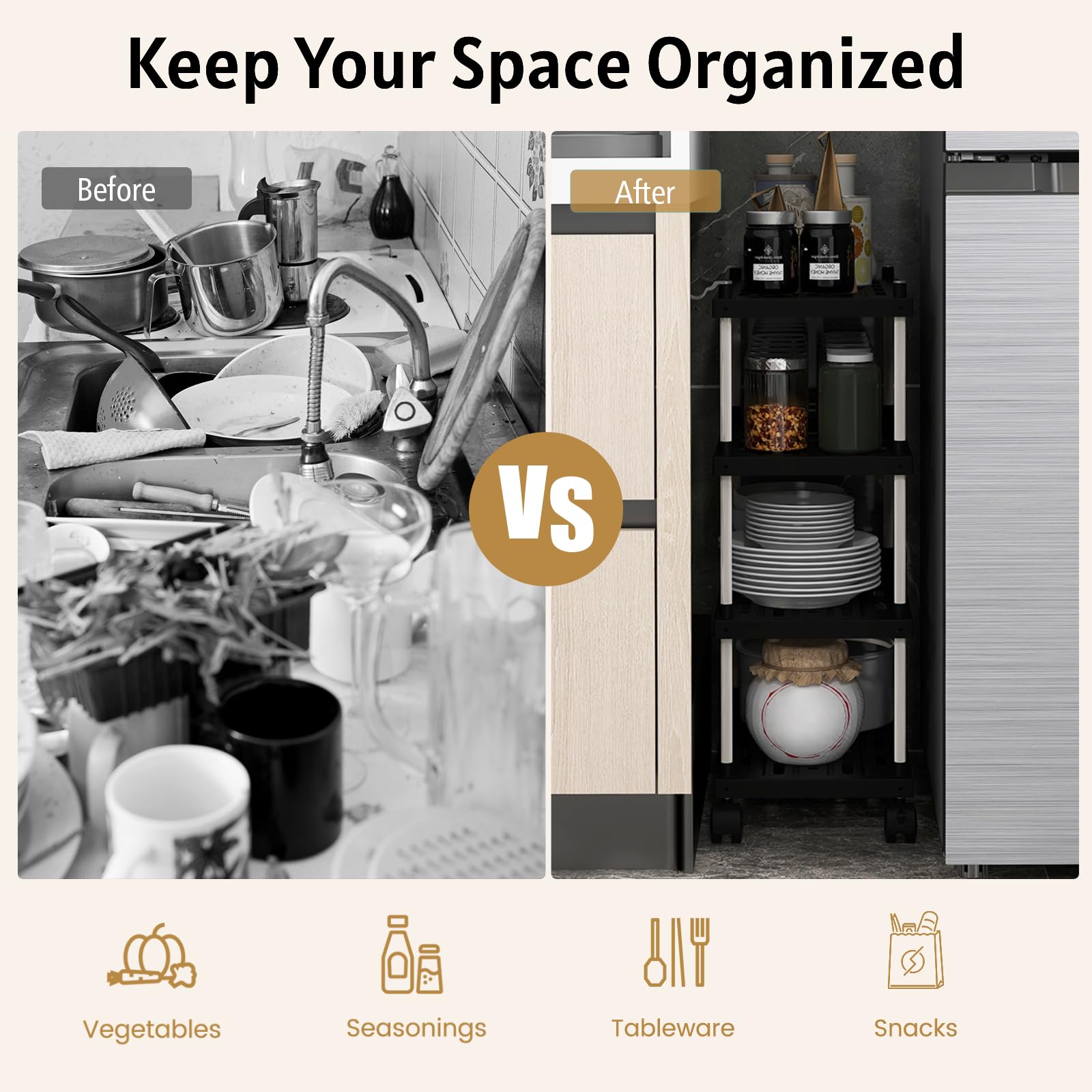 - Sturdy Structure: Made of heavy aluminum frame and PET material, the rolling storage trolley is rust-proof and durable to have long lasting service time. And each shelf can hold weight up to 5kg, strong enough to meet your needs.