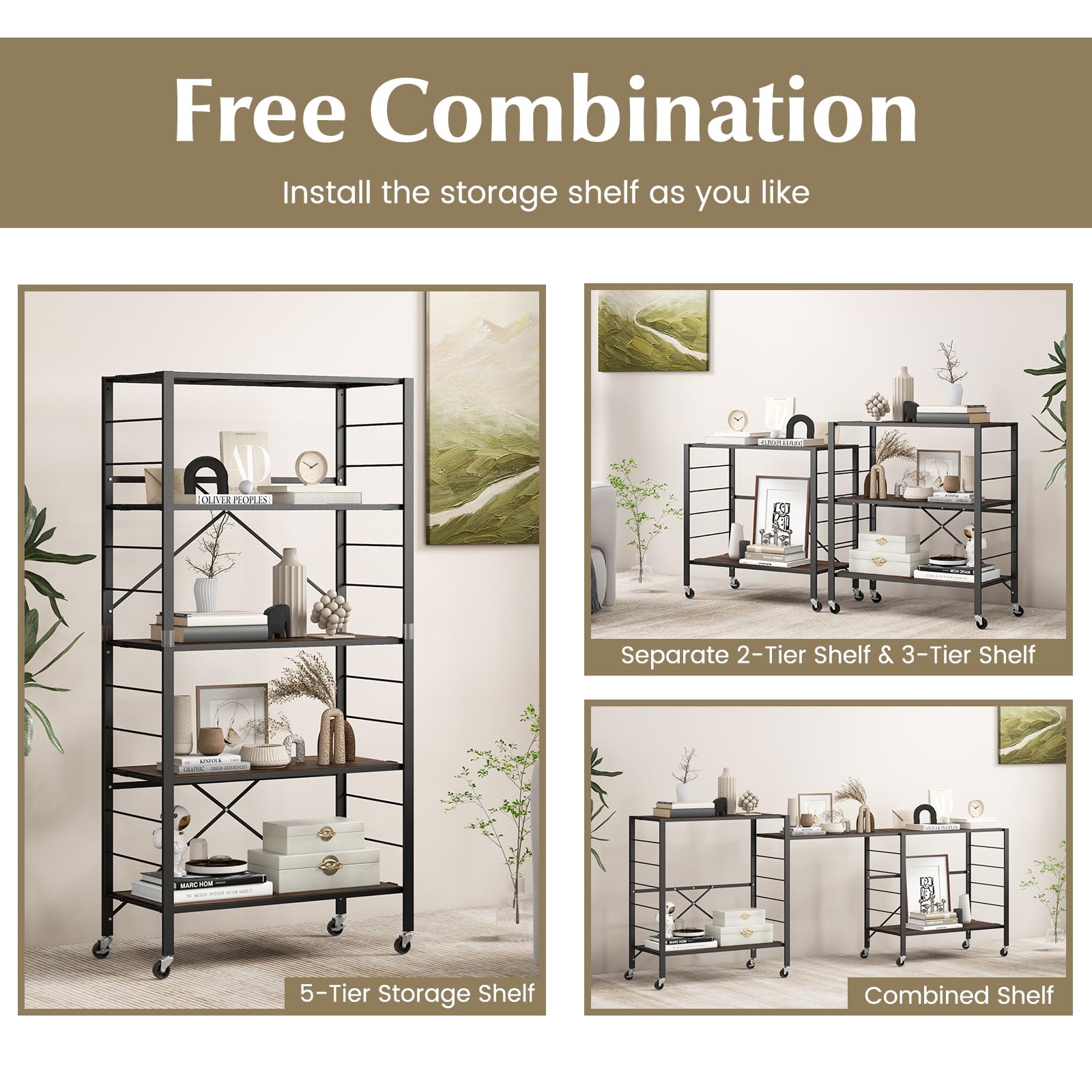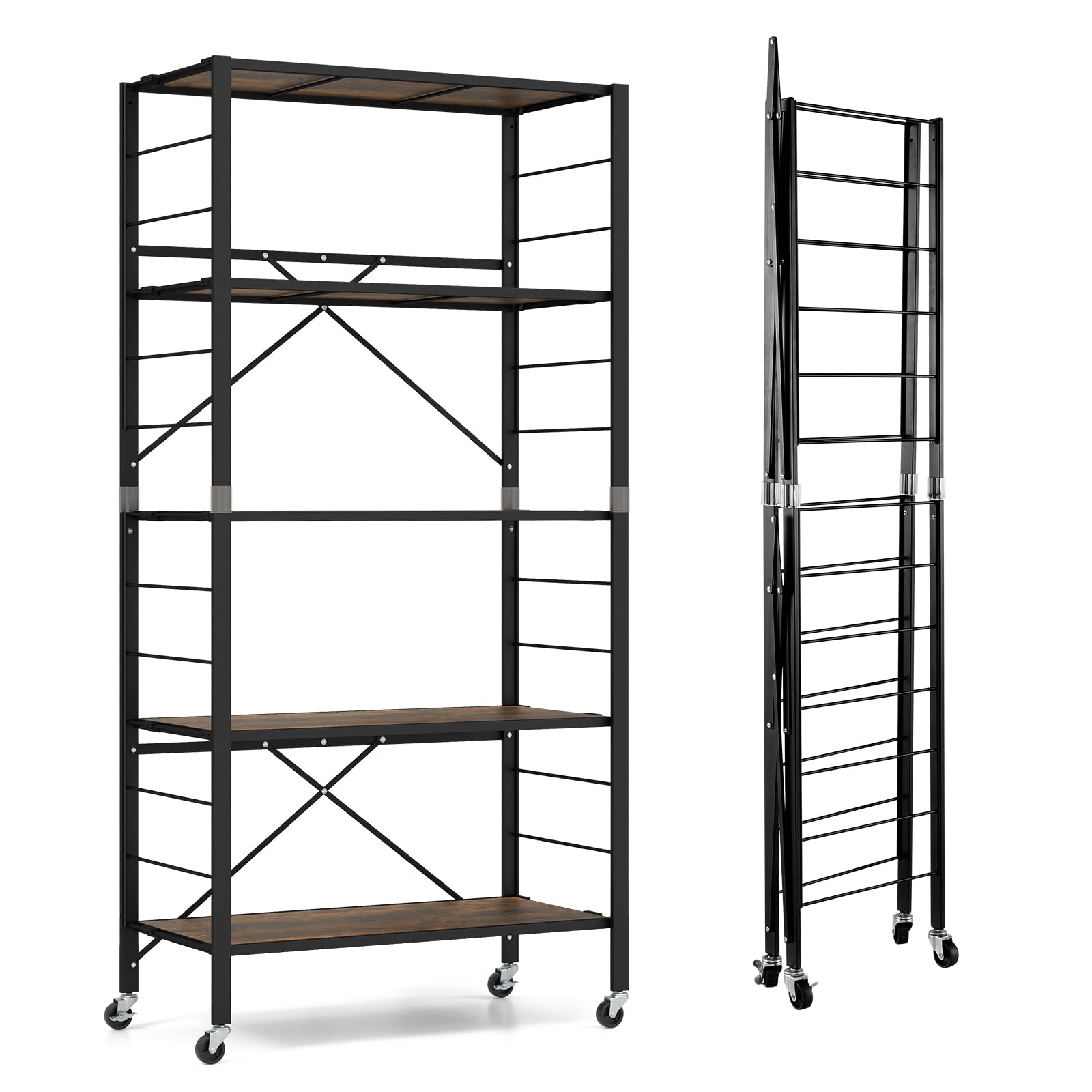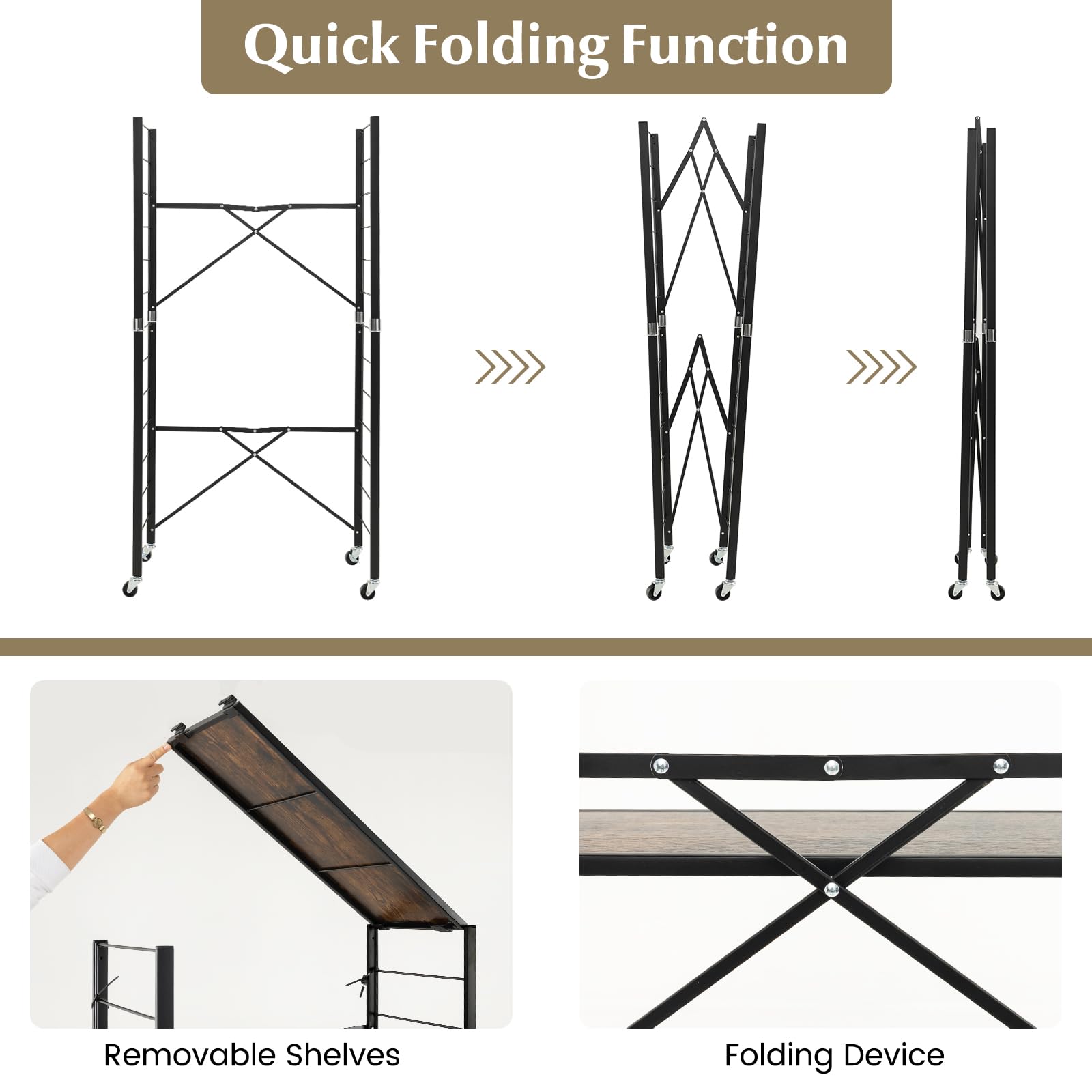 Movable and Lockable Wheels: This folding shelving unit is equipped with 4 rolling casters. 4 rotatable wheels make it easy to move, while 2 lockable wheels keep it stable. Plus, you can also detach all wheels to use it as a still storage rack.
