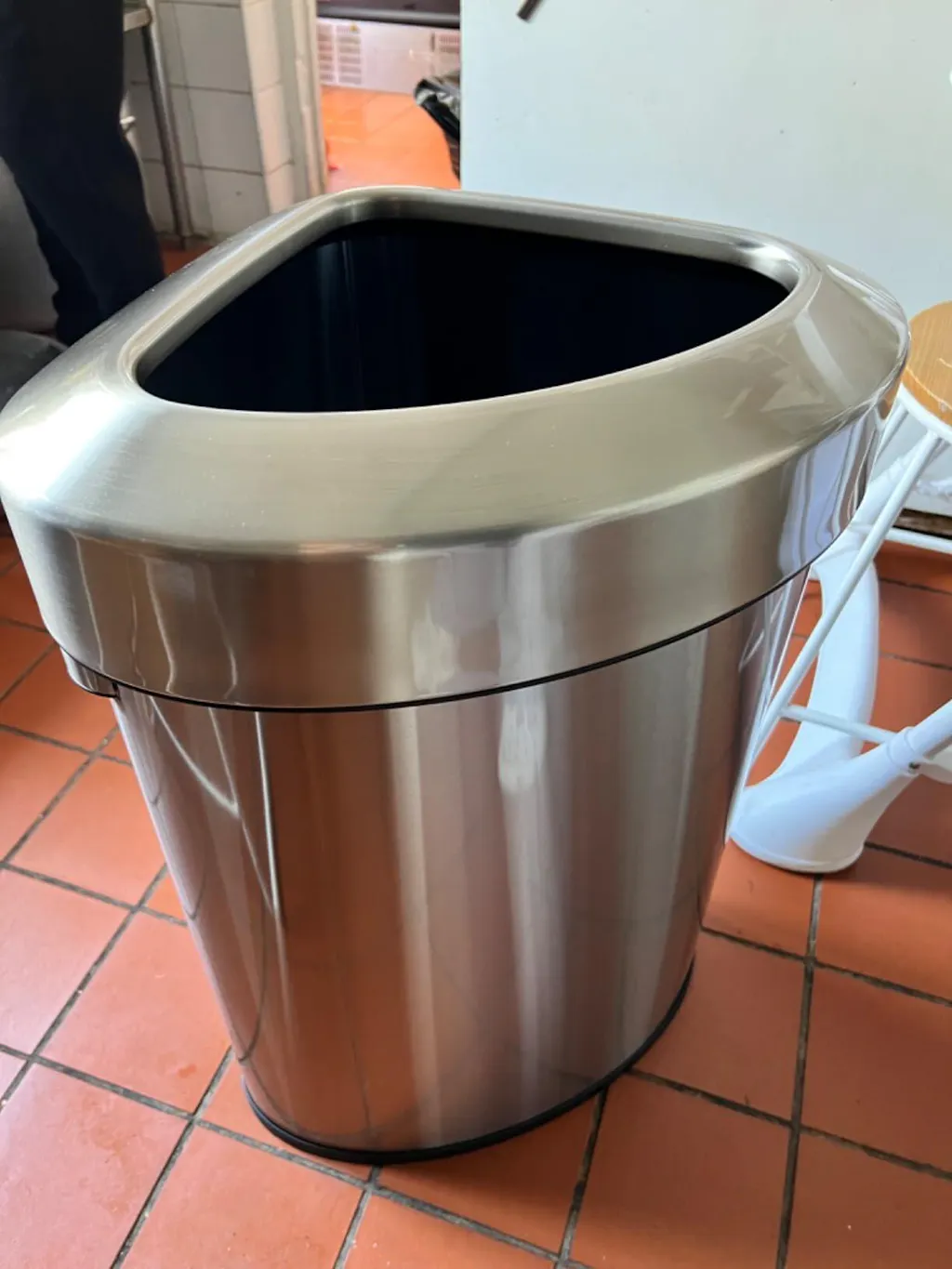 I love it! It fits perfectly in the corner of my kitchen, saving space. The lid closes well, so no bad smells escape, and it's super easy to clean. The material feels strong and durable too. Overall, it��s a great choice.