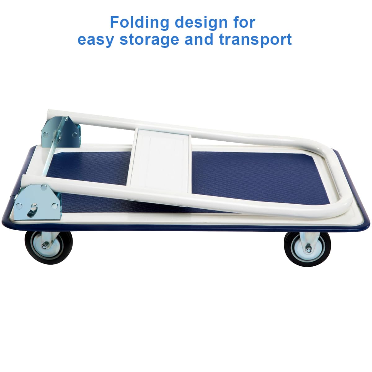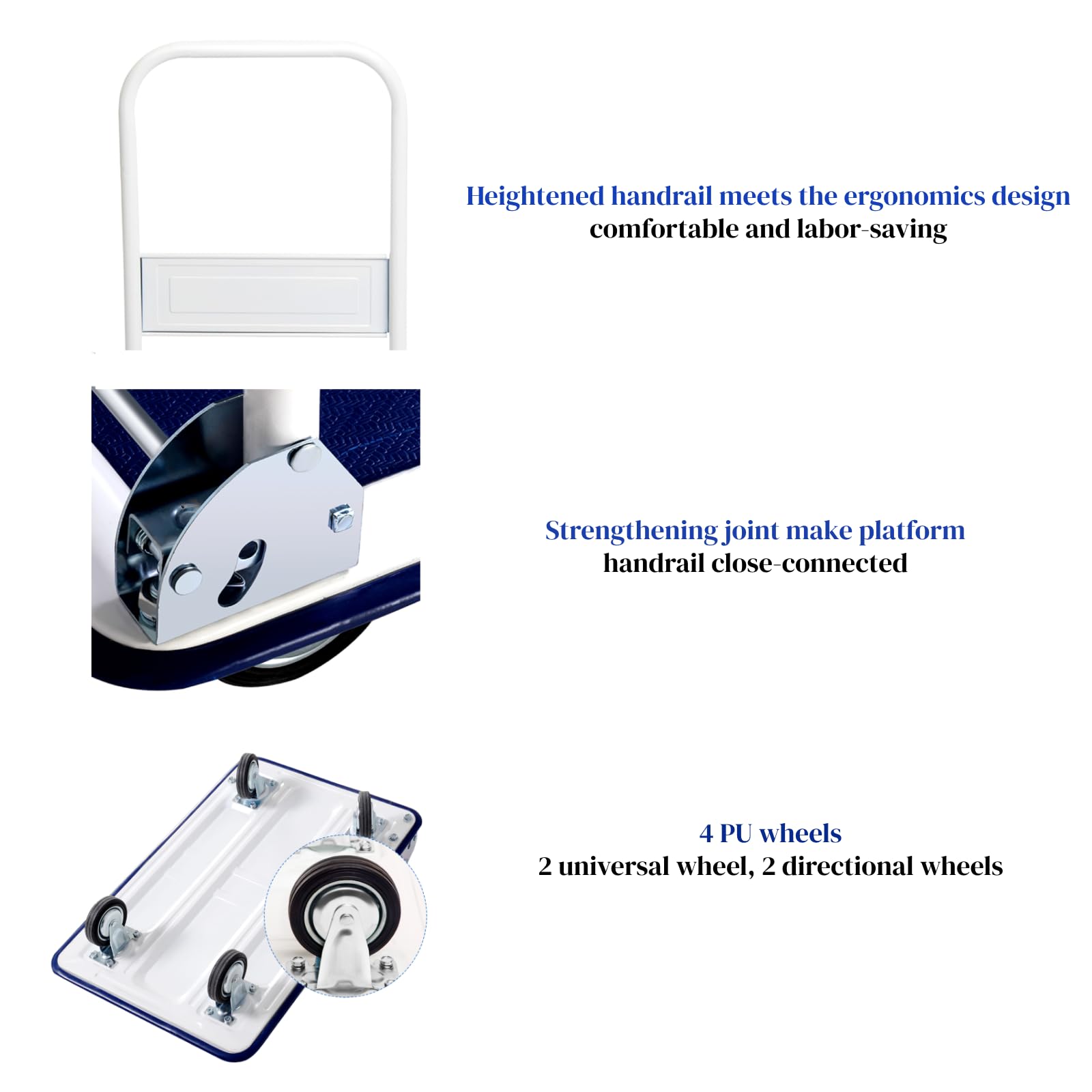 - Easy Carrying with PU Wheels: The platform cart is equipped with 4 PU wheels, including two universal wheels and two directional wheels, so you can move the dolly cart with great ease in any direction.