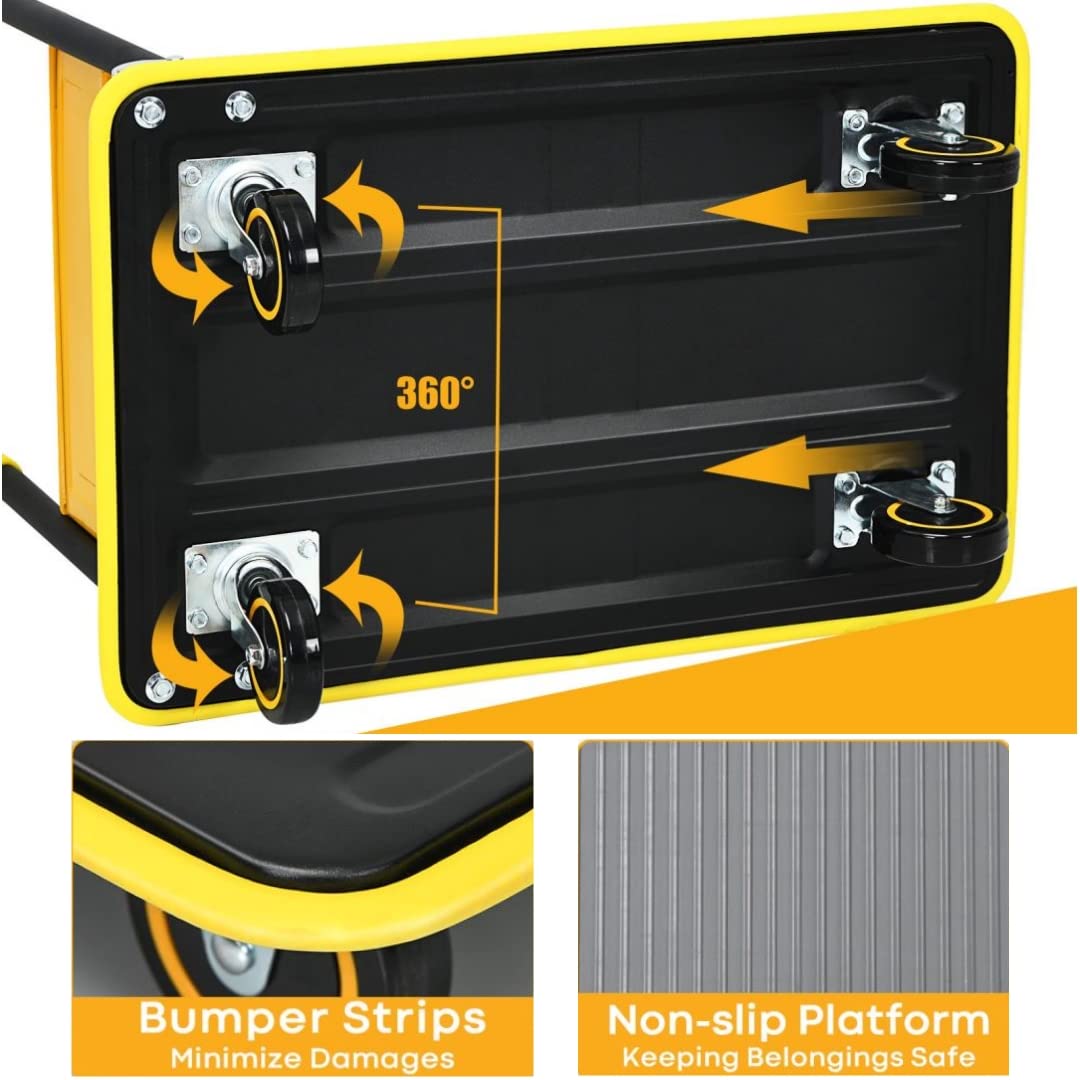 Giantexuk folding hand sack truck, 300kg capacity heavy duty platform trolley with wheels & handle (91x61x89cm, 300kg, yellow+black)