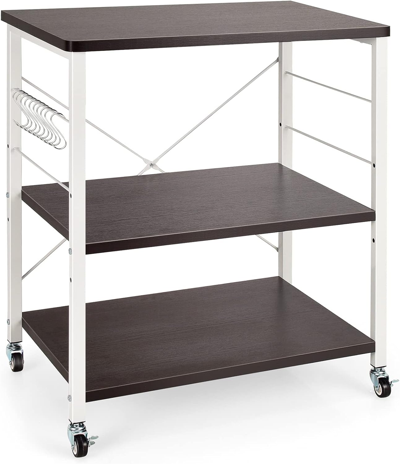 Giantexuk kitchen baker's rack, 3 tier serving cart microwave stand with shelves, lockable wheels, 2 adjustable shelves