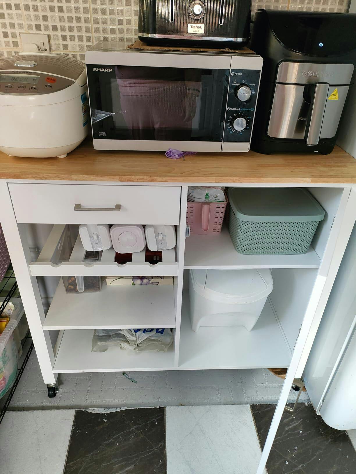 - Perfect Kitchen Organizer: This kitchen rolling cart has a wide countertop, which offers you plentiful space for food preparation or placing some small items. Moreover, the drawer, the wine rack and the open shelves feature ample room for ingredients and wine bottles.