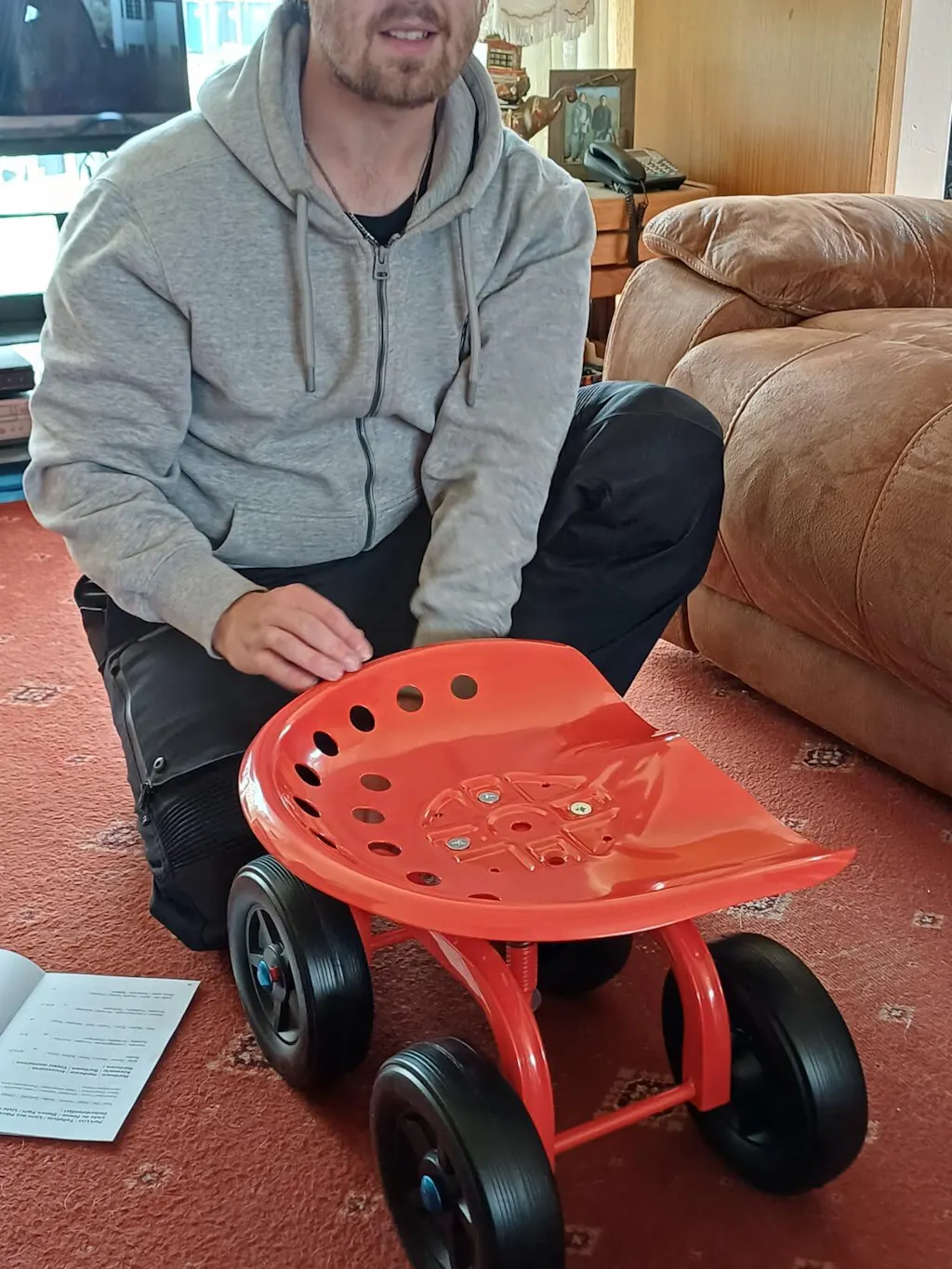- Height Adjustable & Swivel Seat: The seat on the garden work scooter has adjustable height with a range from 31-41cm, which can eliminate the need to bend down and help relieve pressure on your back and legs. In the same time, the seat features a 360 degree swivel motion, so you can completely rotate in any directions as you work.