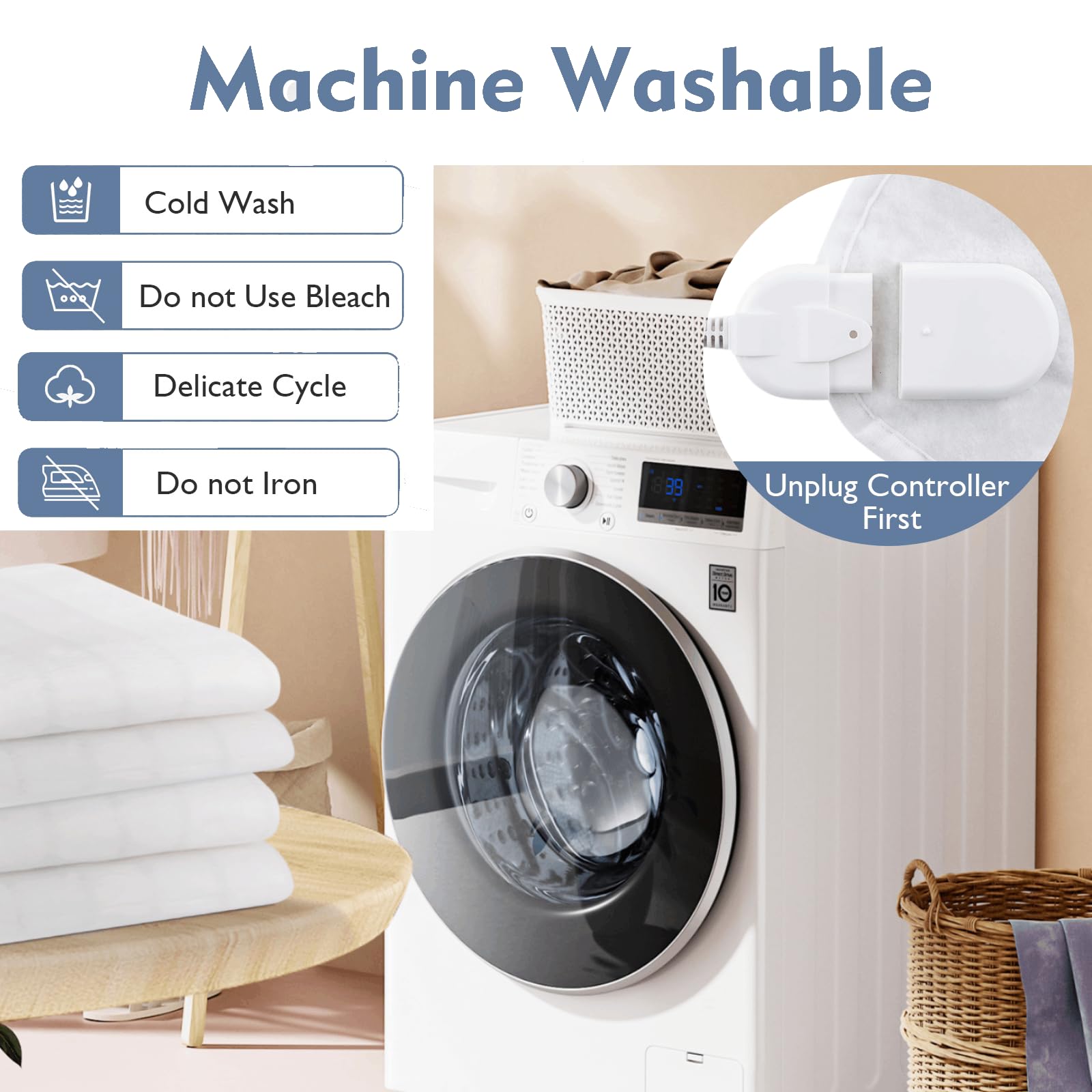 Easy Maintenance: Enjoy hassle-free maintenance with this machine-washable heated mattress pad. Keep it clean and fresh with minimal effort, ensuring a hygienic and cozy sleep environment. Remember to unplug and detach the cable before wash.