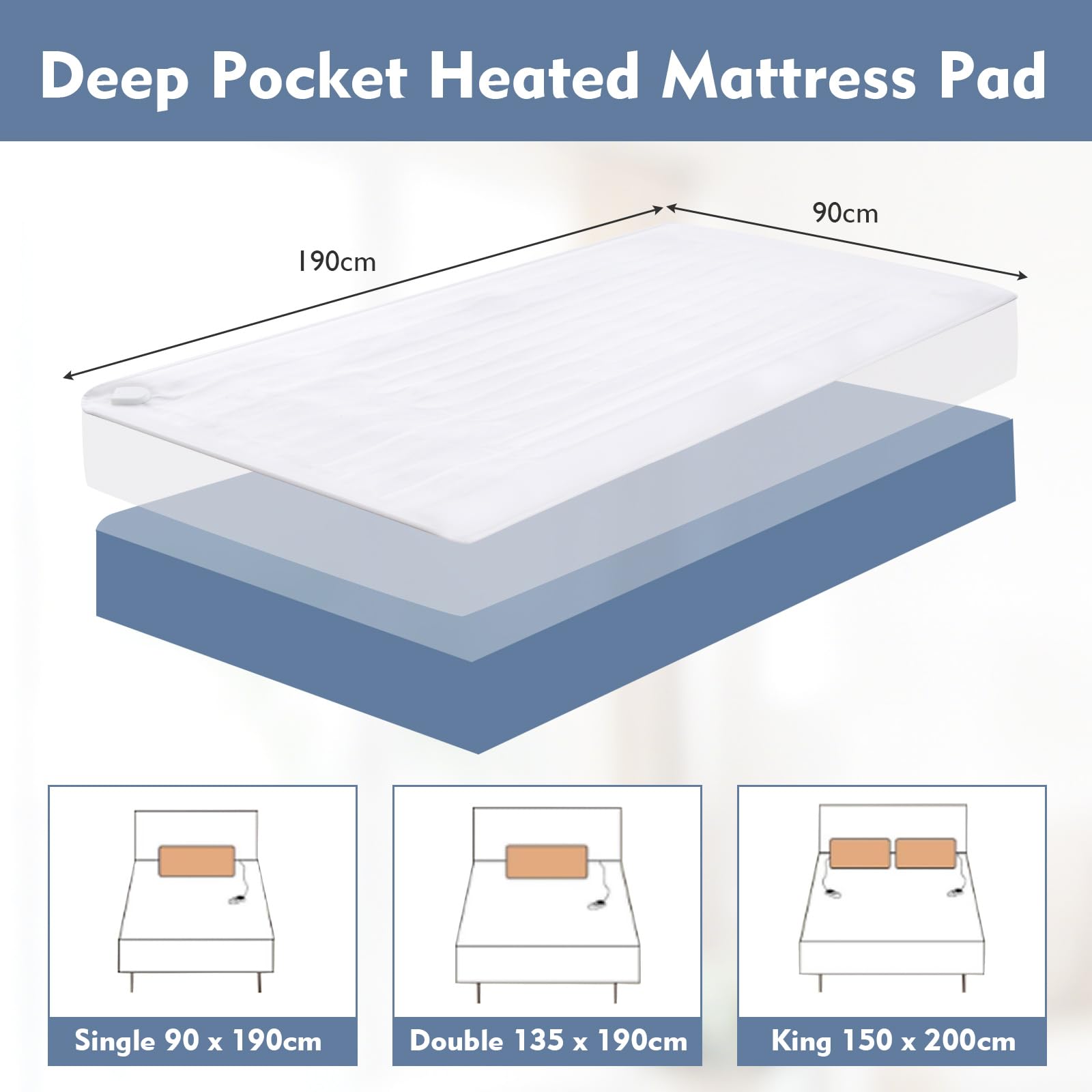 With the convenient single/dual controller(s), you can now customize your own warmth and timing preferences for the ultimate night’s sleep. Besides, the state-of-the-art dual spiral heating wire ensures efficient and even heat distribution, keeping you cozy and worry-free with its over-heat protection. Crafted from top-notch material, this electric mattress pad guarantees long-lasting durability and unmatched comfort for a heavenly slumber every single night. No more annoying slipping or readjusting - the secure fit deep pocket design snugly fits mattresses up to a luxurious 40 cm thick. And the best part? The machine washable feature allows for effortless maintenance, keeping your sleep environment hygienic and inviting. Treat yourself to the comfort you deserve - get your own heated mattress pad now and sleep like a dream!