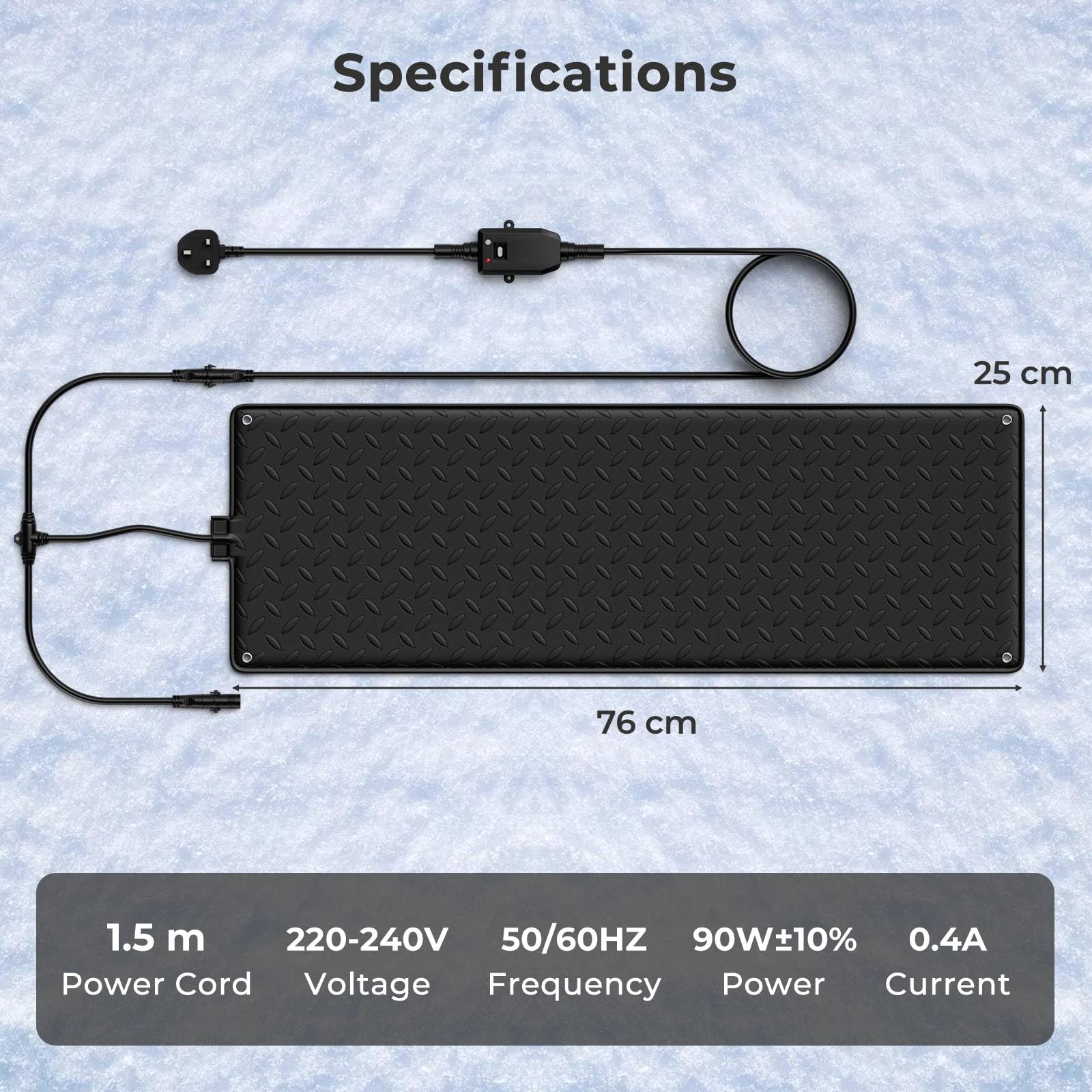 | Package Includes | 1 x Snow Melting Mat, 1 x Plug, 1 x Instruction |
