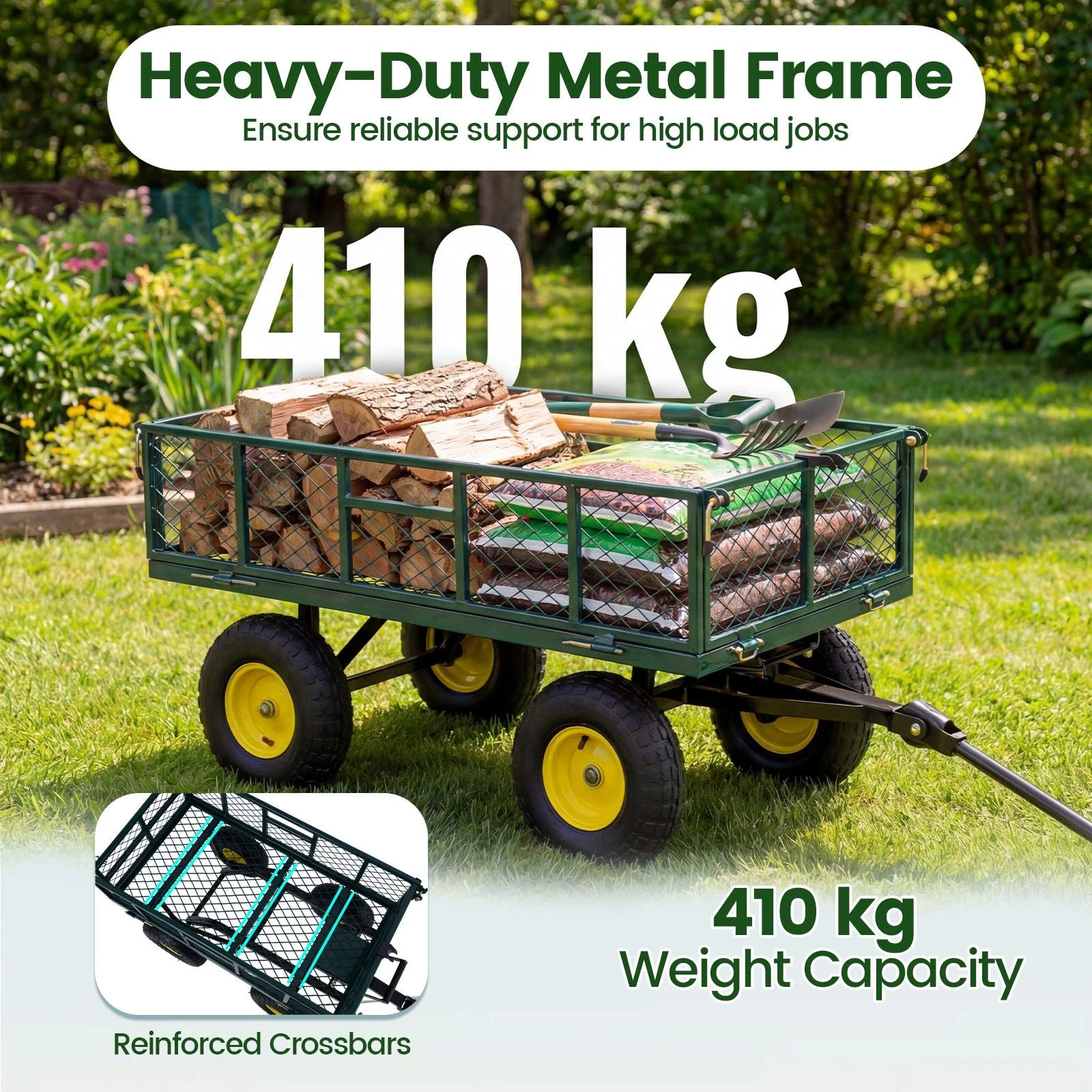 Heavy-Duty Metal Frame: This garden dump cart features a robust metal frame, providing exceptional scratch-resistant and deform-resistant performance. Plus, the strong construction confidently supports up to 410 kg, making it ideal for carrying soil, tools, firewood, or large yard debris during any project.