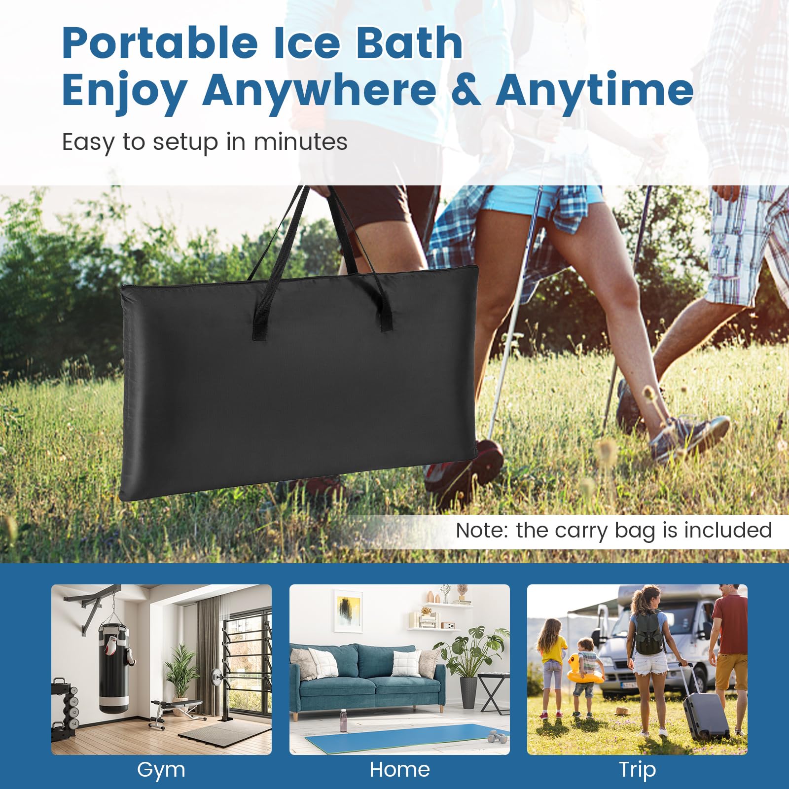 Package Includes: 1 x Portable Ice Bath Tub, 1 x Carrying Bag, 1 x Instruction