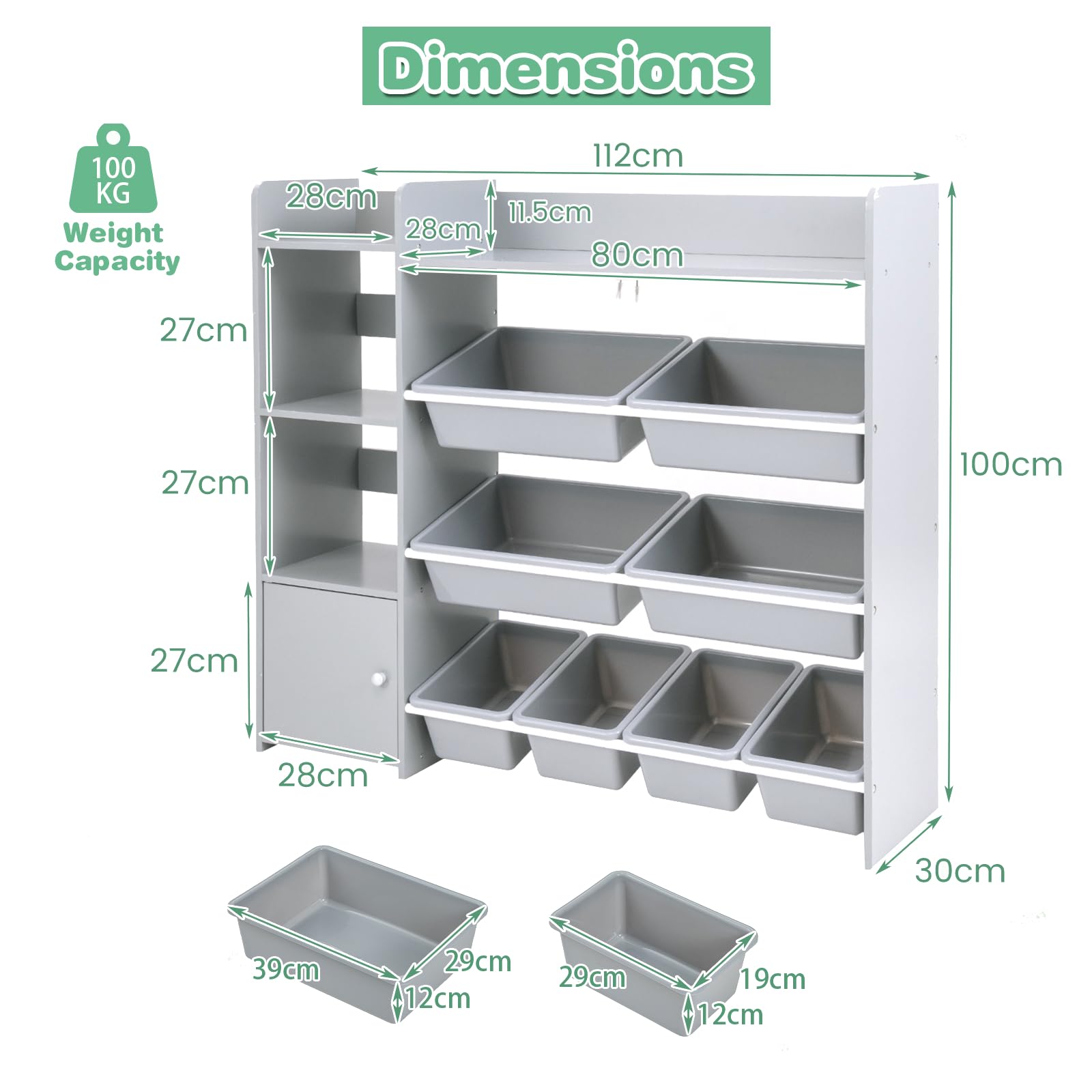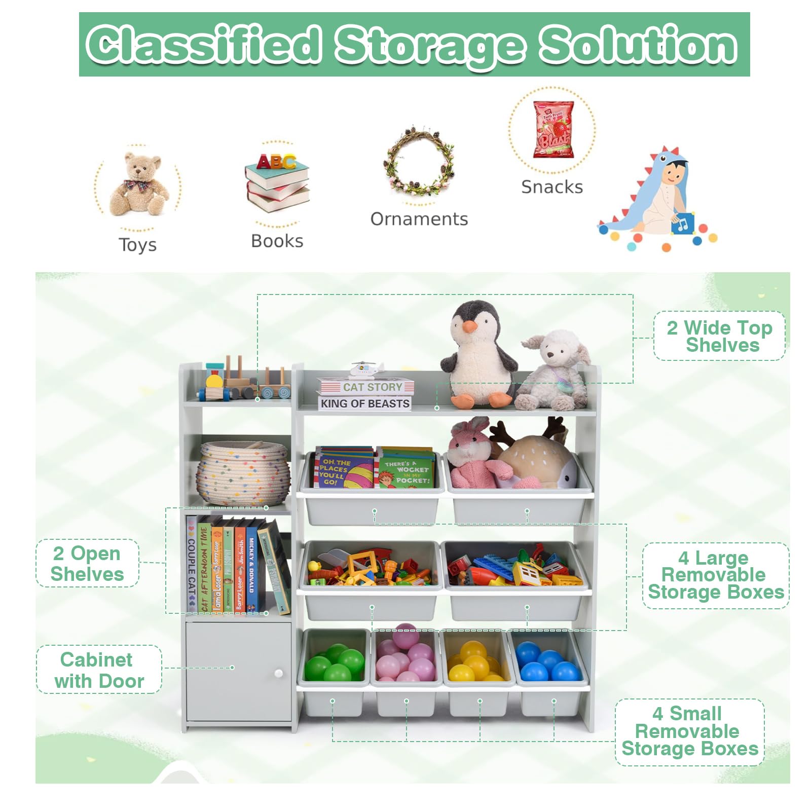 Ample and Classified Storage Space: This multifunctional organizer provides plenty of storage space for toys, books and more. With 4 large and 4 small storage boxes, along with side shelves and a cabinet, it's perfect for keeping your child's belongings neatly organized and easily accessible.