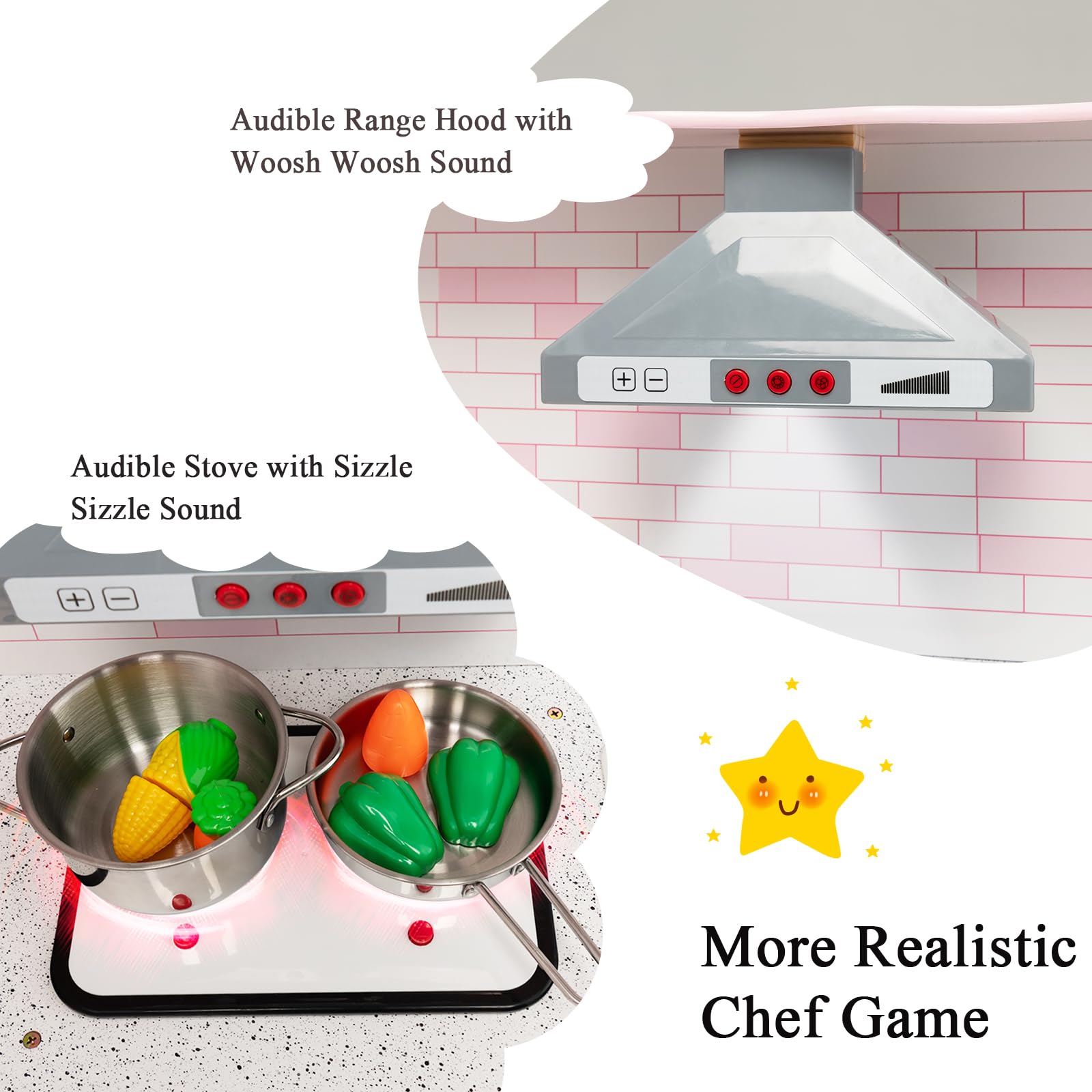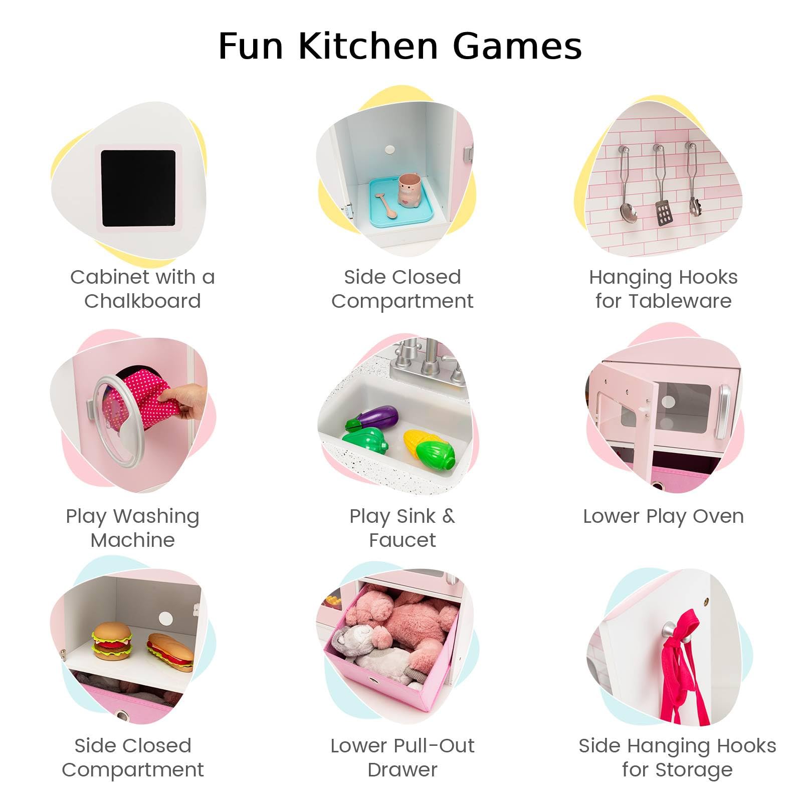 Entertaining and Educational Toy for Kids: This pink kitchen toy set features the perfect size for children over 3 years old and creates an ideal space for them to entertain and socialize. At the same time, kids can also improve hands-on ability, creativity storage habits and more.
