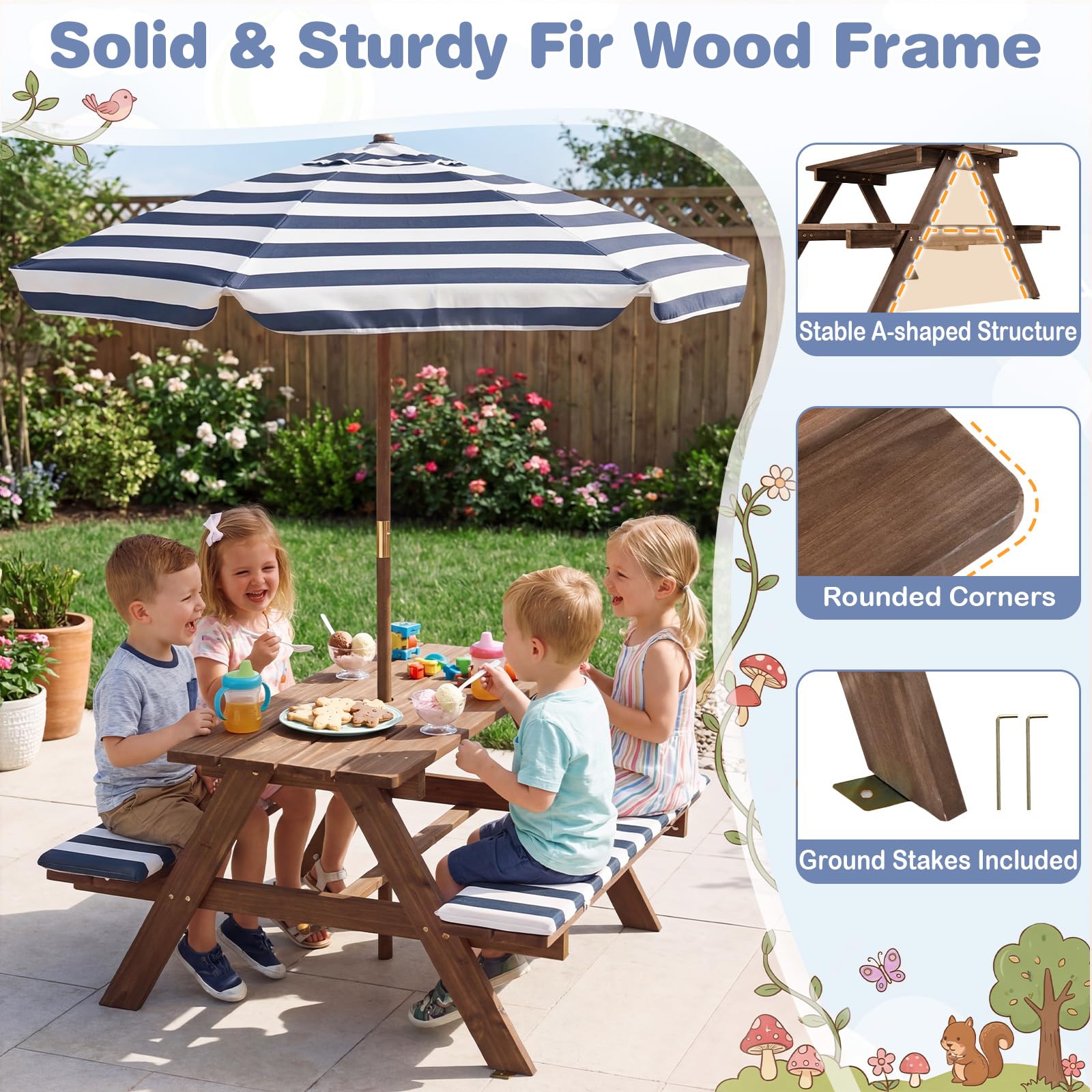 Kids Picnic Table, Wooden Children Garden Table and Bench Set