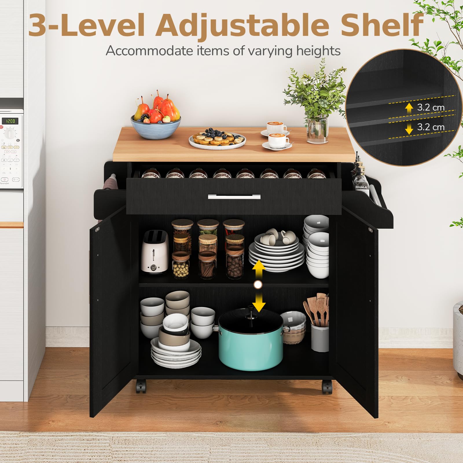 Flexible Utility: The versatile storage cart is designed to transcend traditional kitchen use, making it an ideal addition to restaurants, bars, living rooms, or dining areas. And it supports various applications, from food prep stations to mobile beverage carts.