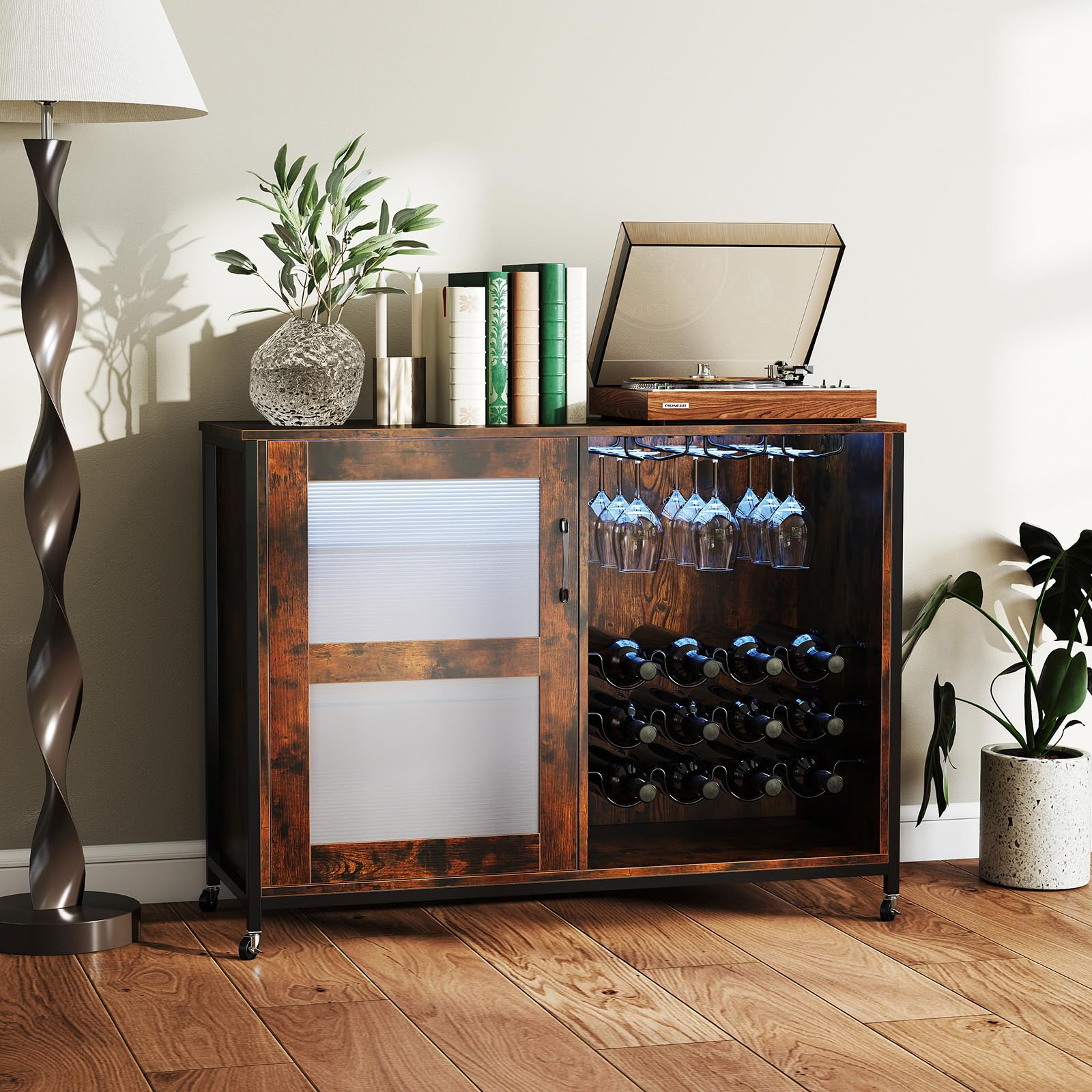 Versatile Industrial Appeal: This versatile cabinet complements any home setting as a wine bar cart, coffee station, or buffet sideboard. Its rustic appearance adds a touch of industrial charm, making it a functional yet stylish addition to your living space.
