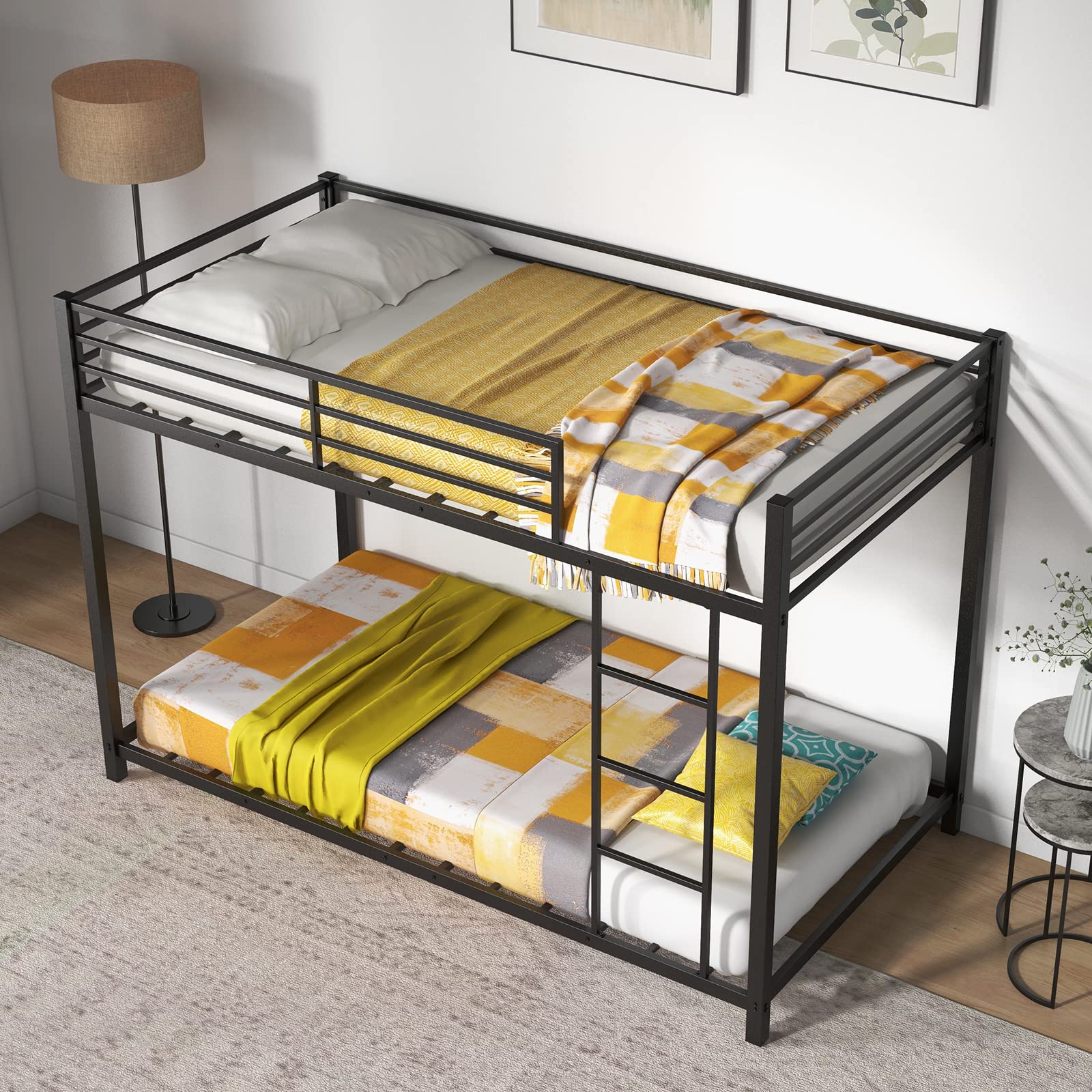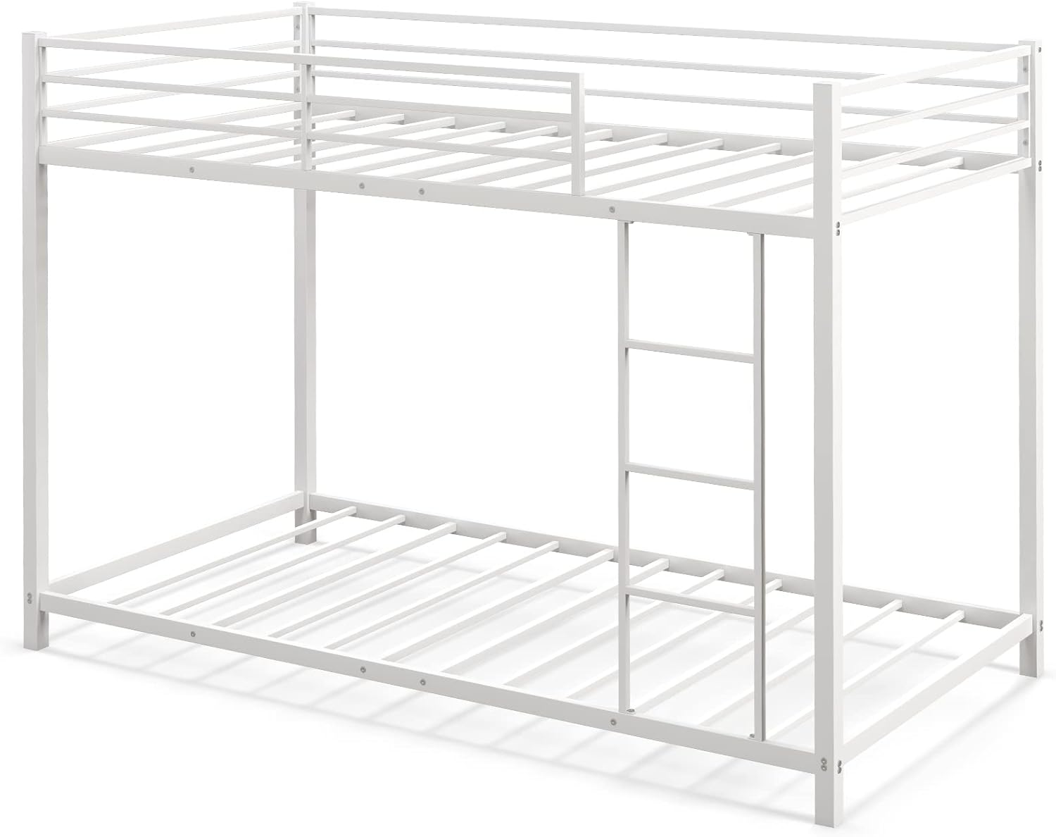 This metal bunk bed is a perfect choice for bedroom, small apartment, etc. Made of powder-coated metal slats, the loft bed with ladder is super enduring and stable to support long-term use. Moreover, for safety use, the slatted high sleeper bed frame is designed with high guardrail to prevent people from falling the bed when sleeping. There is more thoughtful design, such as 3-step ladder for easy access to the upper bed. Besides, this single over single bunk bed features space-saving design, making it ideal for rooms with limited space.