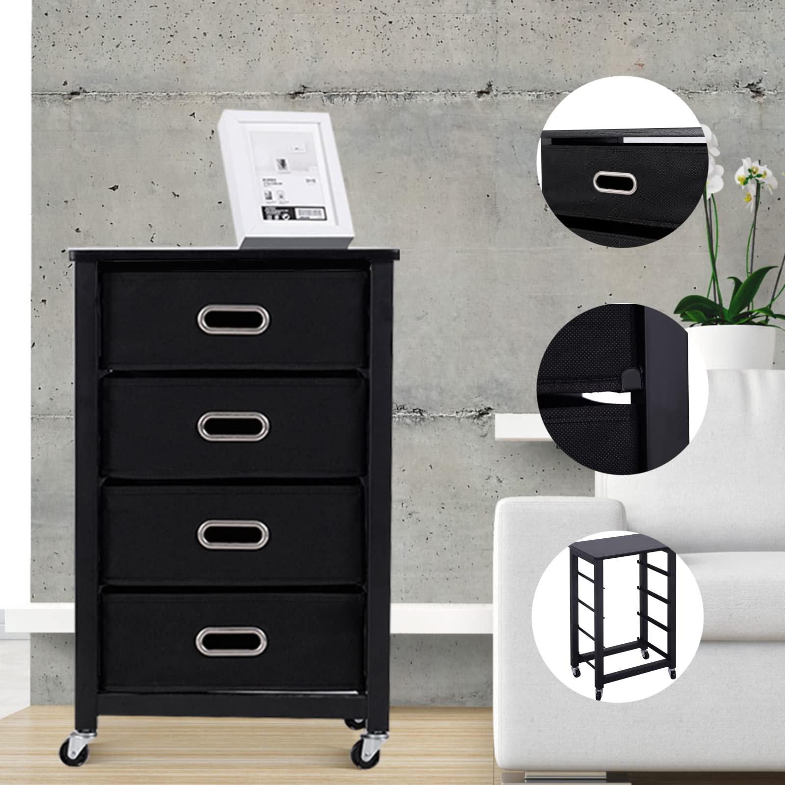 High-Quality Materials and Stable Structure: The filing cabinet is mainly made of high-quality fabric and stainless steel, which have good durability. The fabric has good air permeability. The metal frame offers good stability and load-bearing capacity so that the filing cabinet can withstand a weight of up to 40 lbs.