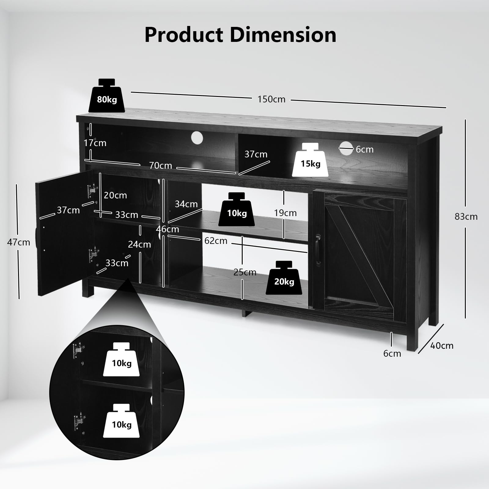 - Weight Capacity of Middle Shelf: 10kg