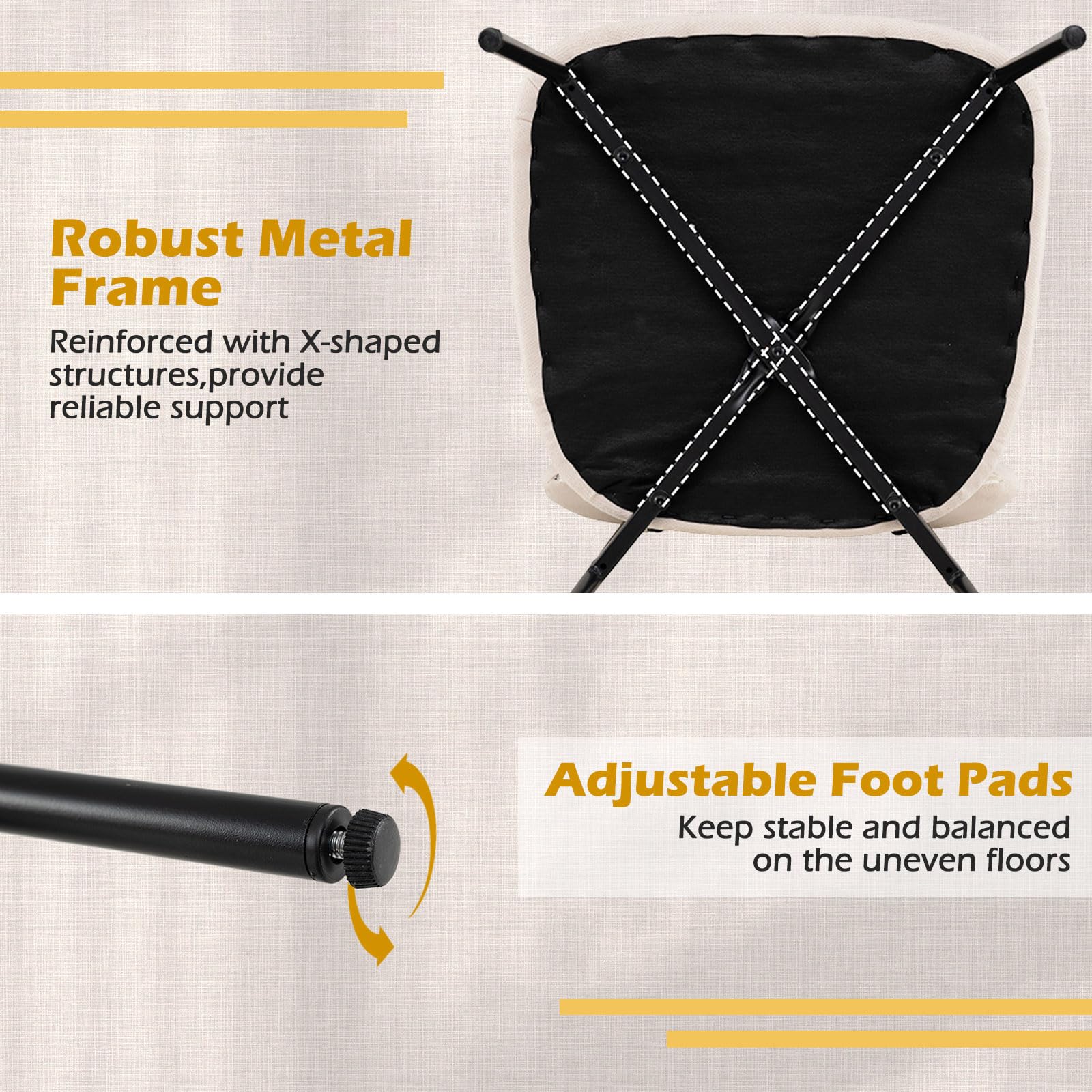 Sturdy and Stable Construction: Built to last with robust metal frames and reinforced with X-shaped structures, these chairs ensure stability and durability. The inclusion of adjustable foot pads ensures the seating remains stable and secure on the slightly uneven floors.