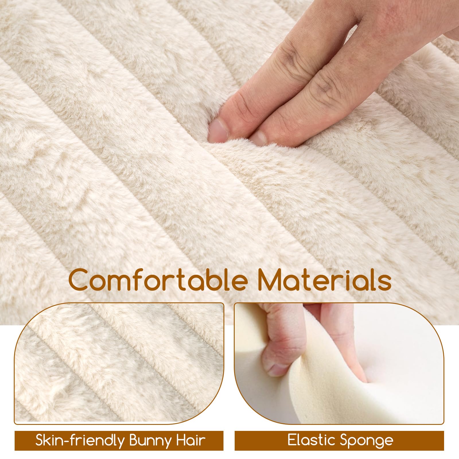 Soft & Comfortable Materials: Skin-friendly bunny hair upholstery and elastic sponge fillings provide ultra softness and comfort. You won't feel uncomfortable even after sitting for a long period of time. Plus, the bunny hair is also not easy to shed for effortless maintenance.