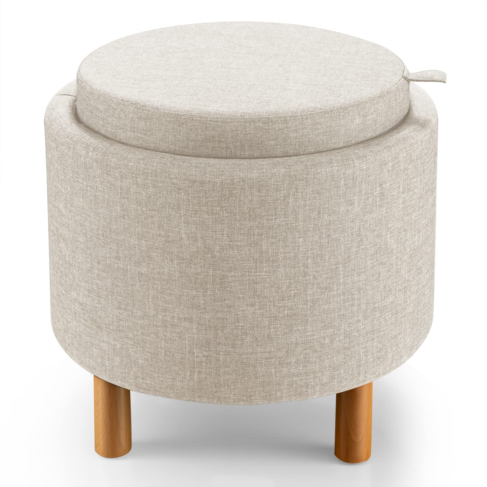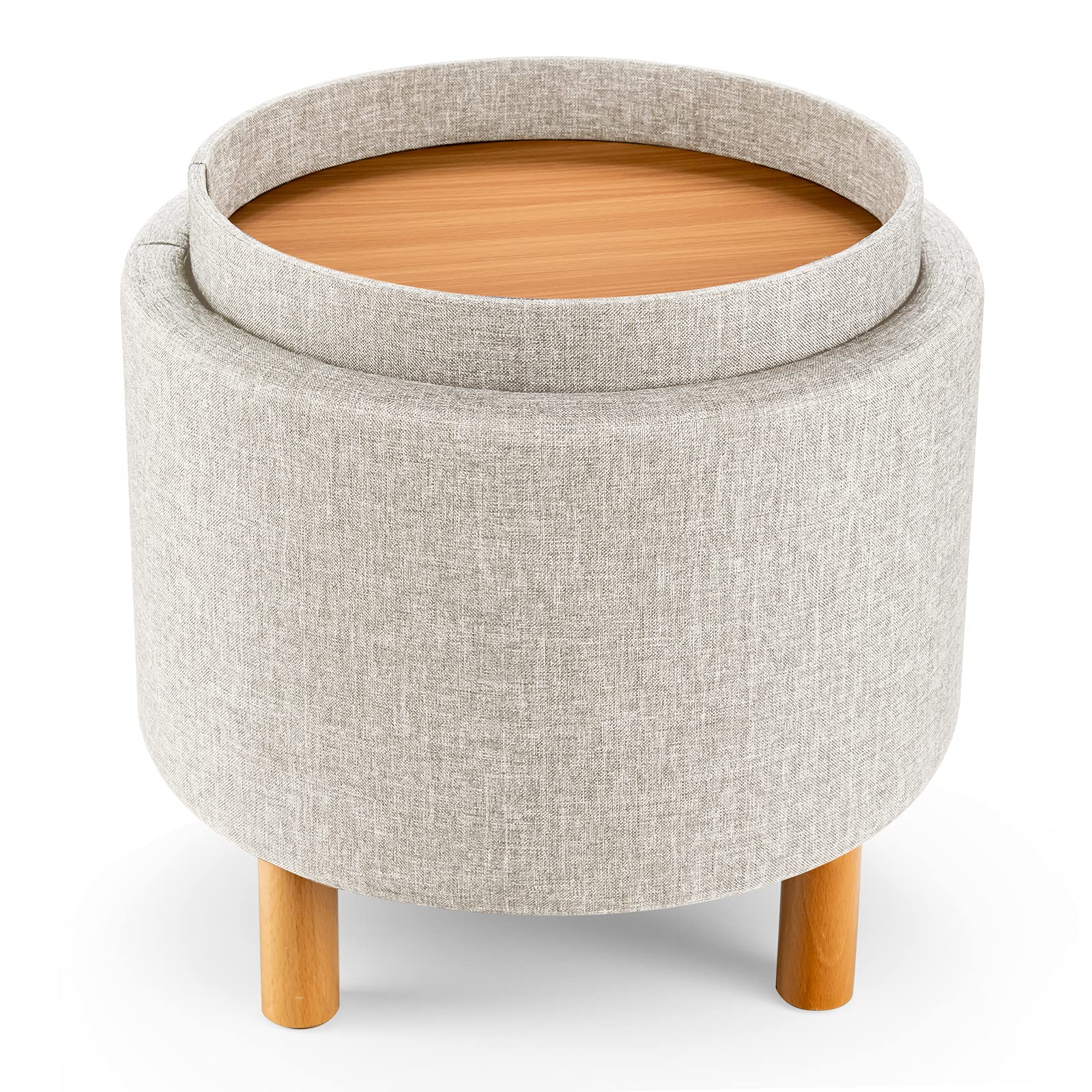 • Storage Ottoman with Removable Tray Top: The round footstool is equipped with a removable tray top, which allows you to treat this stool to a side sofa table. Flipping over the lid, you can put some desserts and cups to enjoy tea time. Since its wooden layer, this tray ensures high load capacity and easy maintenance.