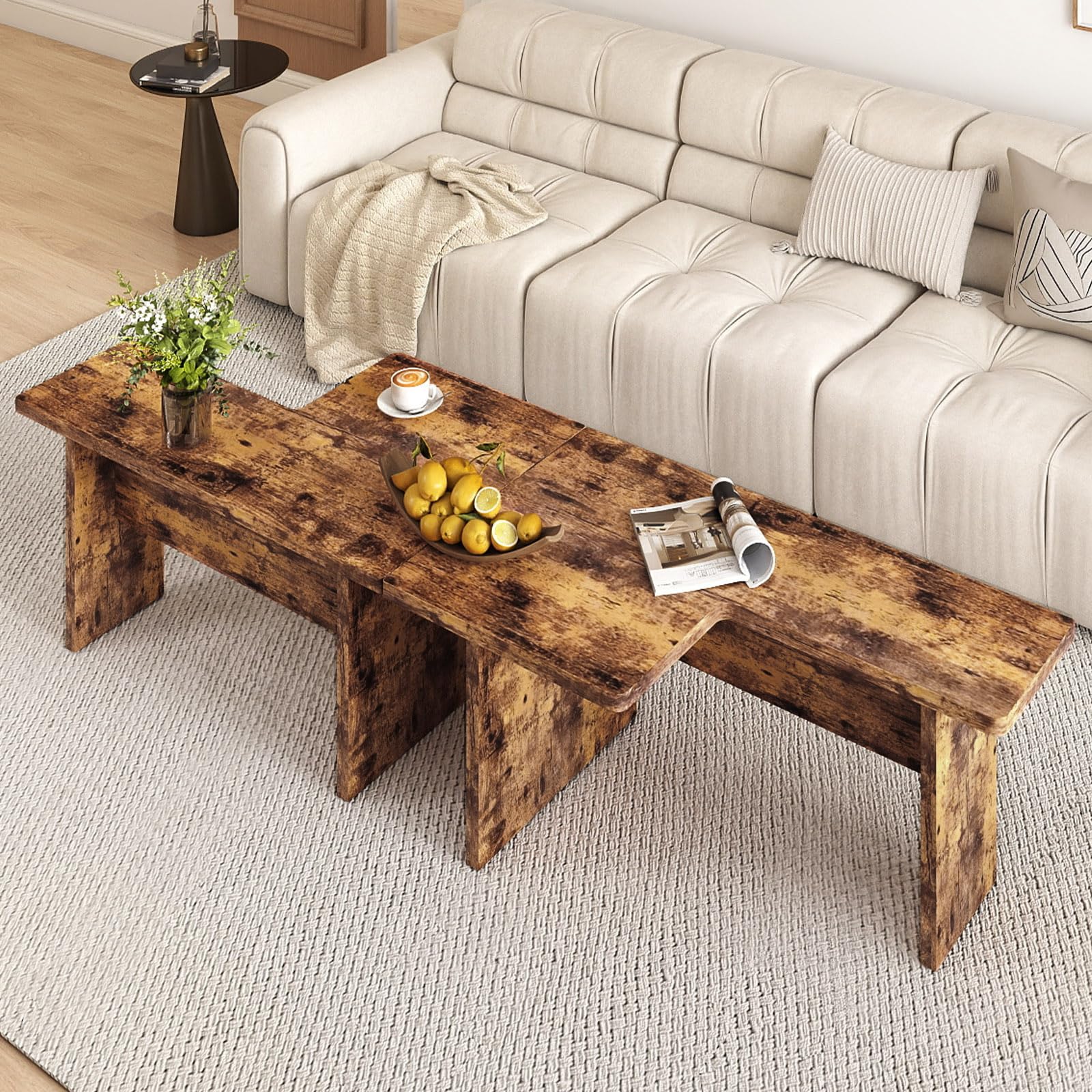 Convenient Modular Design: The coffee table set features a modular design that allows for a variety of arrangement options, including straight-line, rectangular, symmetrical, Z-shaped, etc. This set can perfectly suit different spatial preferences.