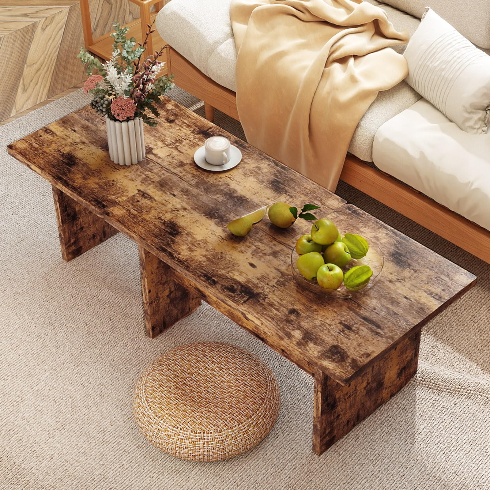 Rustic Aesthetic with Refined Details: Designed with a rustic finish, the living room table set includes discreet screw hole covers, presenting a clean and polished appearance that enhances the overall visual appeal.