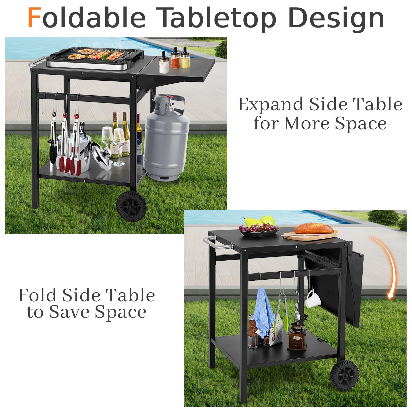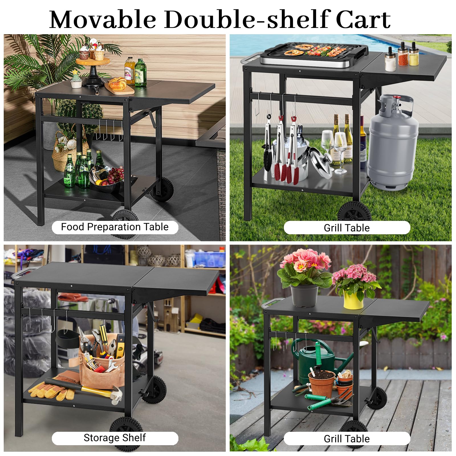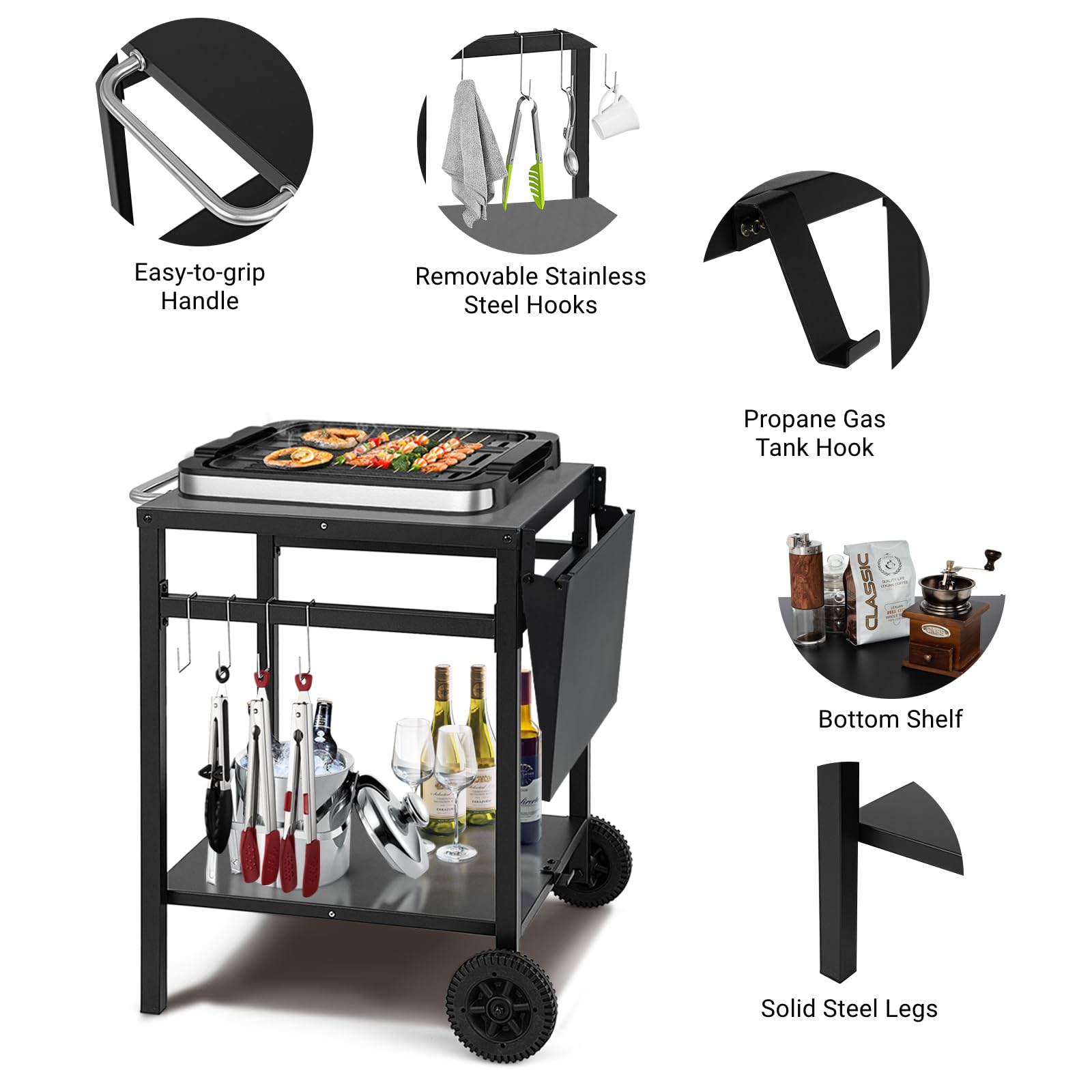 Functional Grilling Table: This practical worktable can be used as a potting table, food preparation table, grill table or pizza oven stand, fulfilling your different needs of outdoor cooking activities. Besides, being made of weather-resistant steel, this dining cart is suitable for outdoor use and has served you and your family for years.