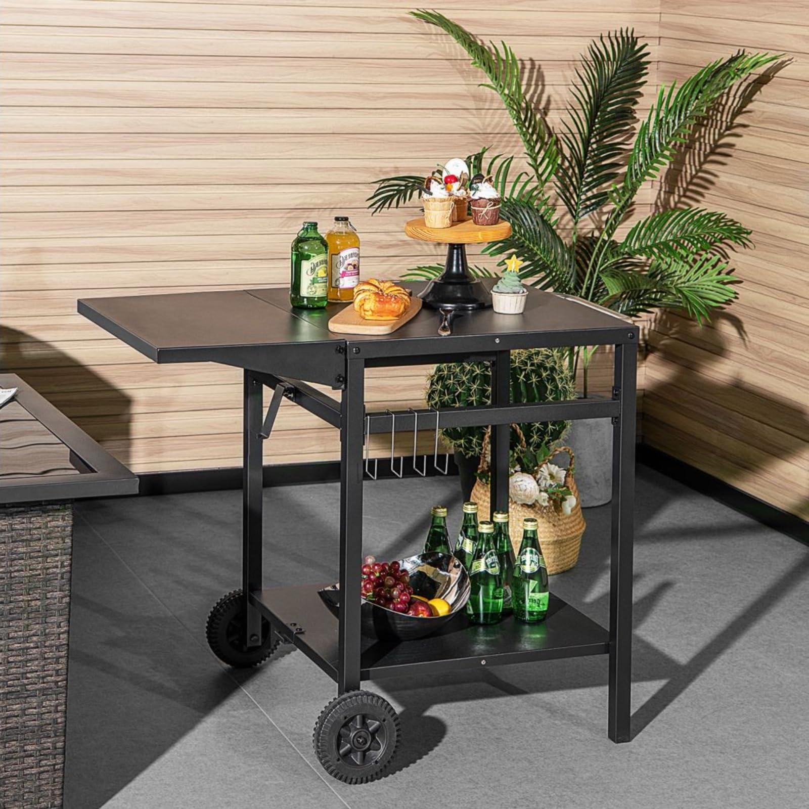 Movable dining cart table trolley with folding tabletop for bbq grill