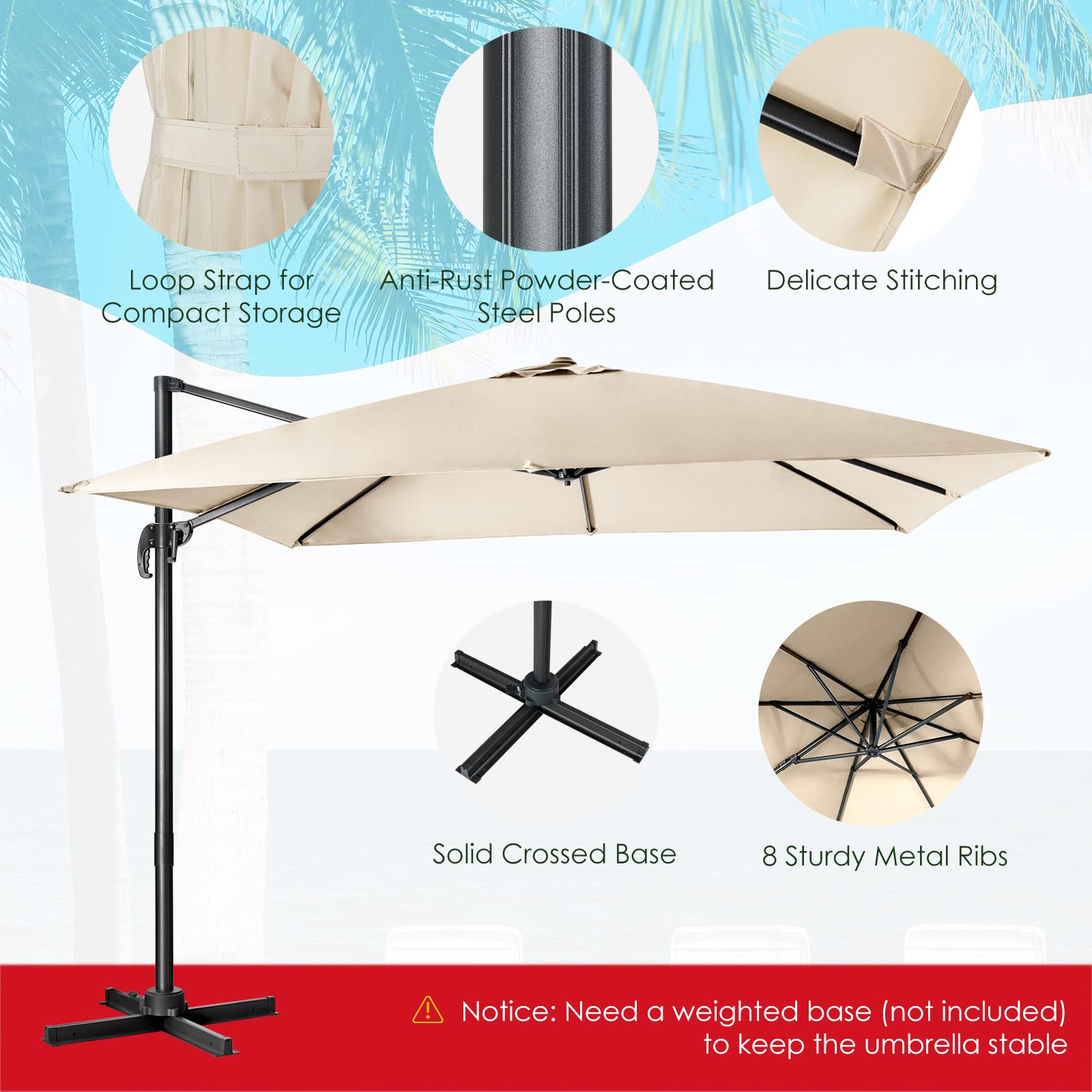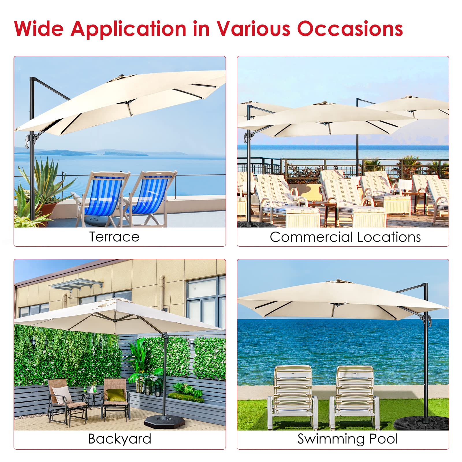Large Shade for Wide Application: The patio cantilevered umbrella provides a very large shading area for your outdoor conversation set, lounge chair, dining table, etc. It is an ideal choice for gathering with friends, dining with family, or enjoying comfortable outdoor living in balcony, backyard or poolside.