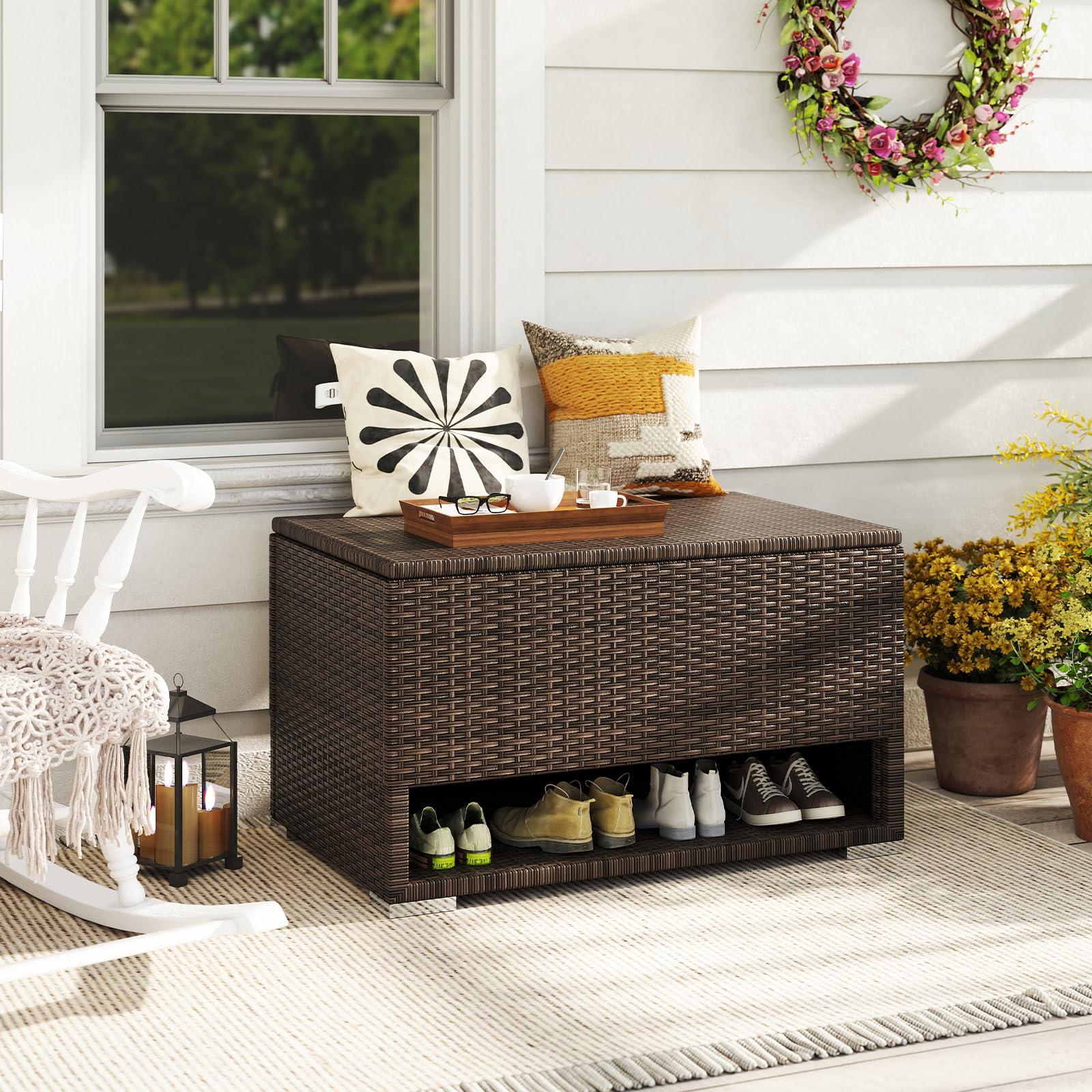 Well-Crafted PE Rattan: Made with hand-woven, colorfast and sun-proof PE rattan, the deck box combines timeless appeal with superior durability. Note: Please avoid rain exposure for prolonged service life.