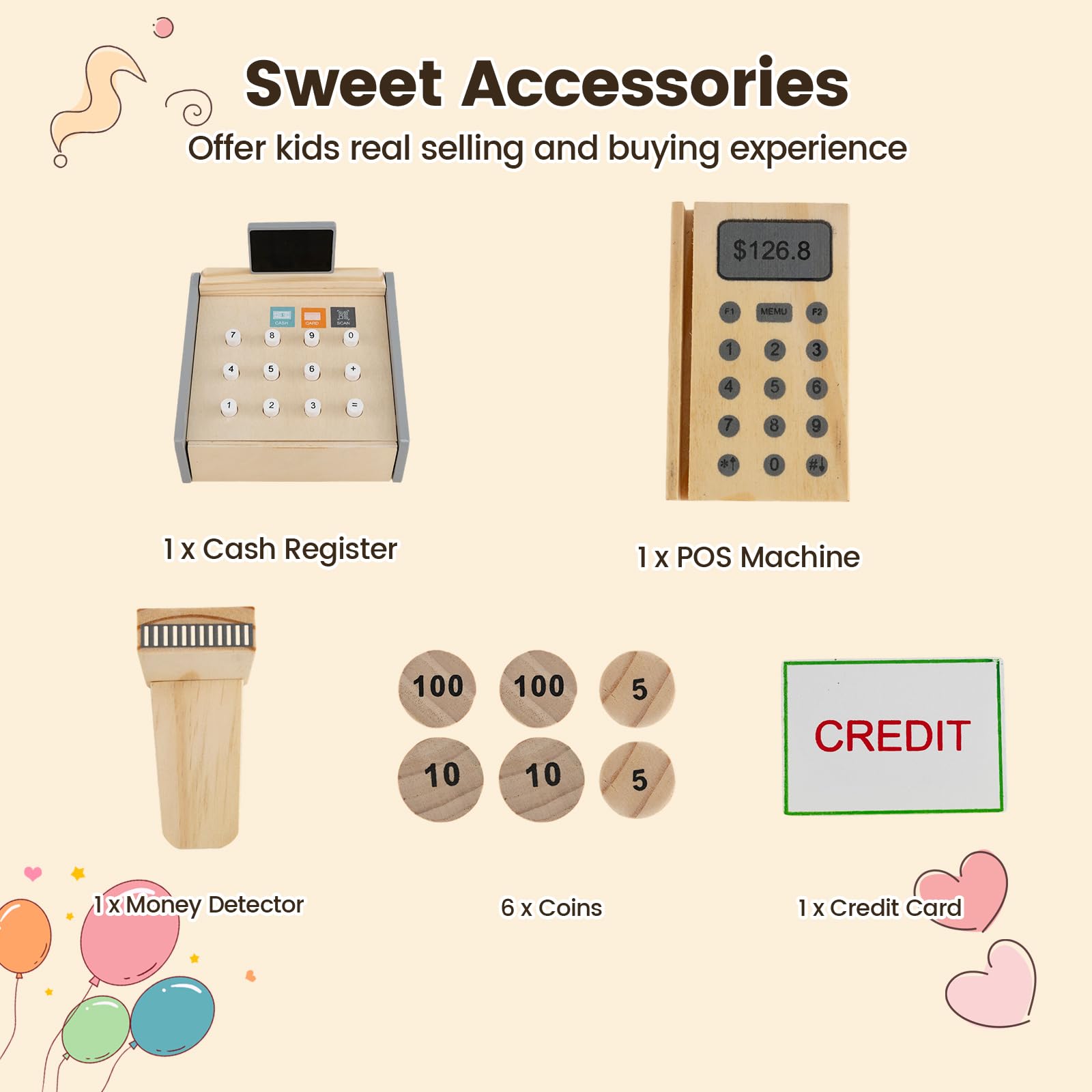 | Package Includes | 1 x Wooden Supermarket Playset, 1 x Shopping Cart, 1 x User Guide |