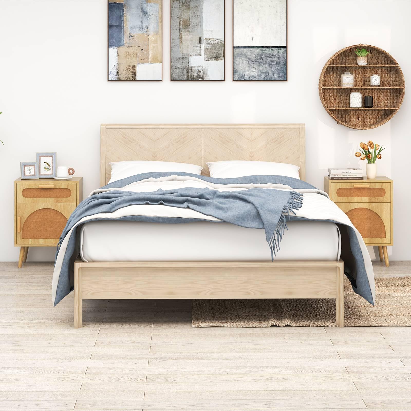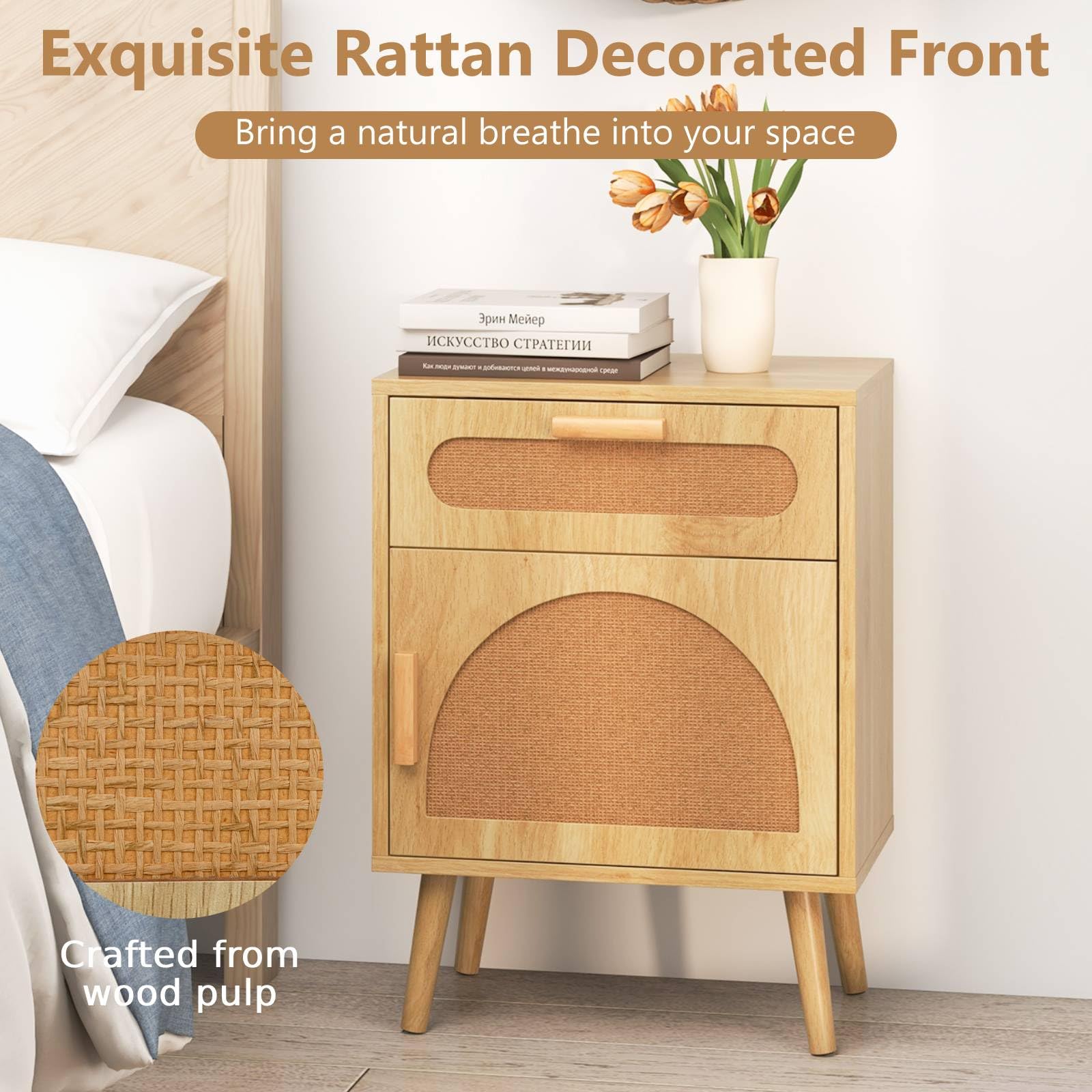 Bohemian-Chic Design: The rattan nightstand features a rattan-decorated drawer front and door for a distinctive appeal. It blends the eclectic charm of Bohemian style with the clean lines of mid-century modern aesthetics, being the perfect addition to your living space.