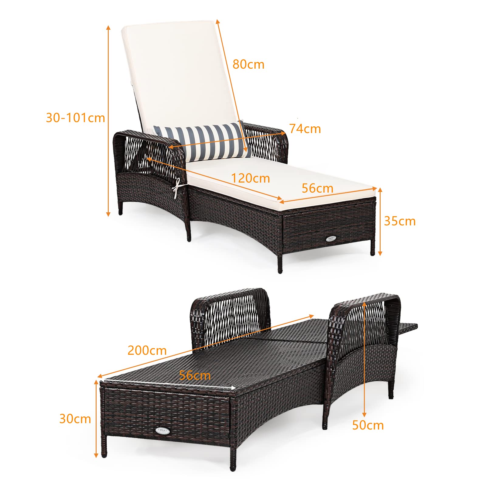 ● Easy to Assemble and Clean: Comes with all needed parts, the simply structured outdoor reclining bed is easy to assemble. You can put them together following the instructions step by step. In addition, the smooth and waterproof wicker surface is easy to keep clean with a damp cloth.