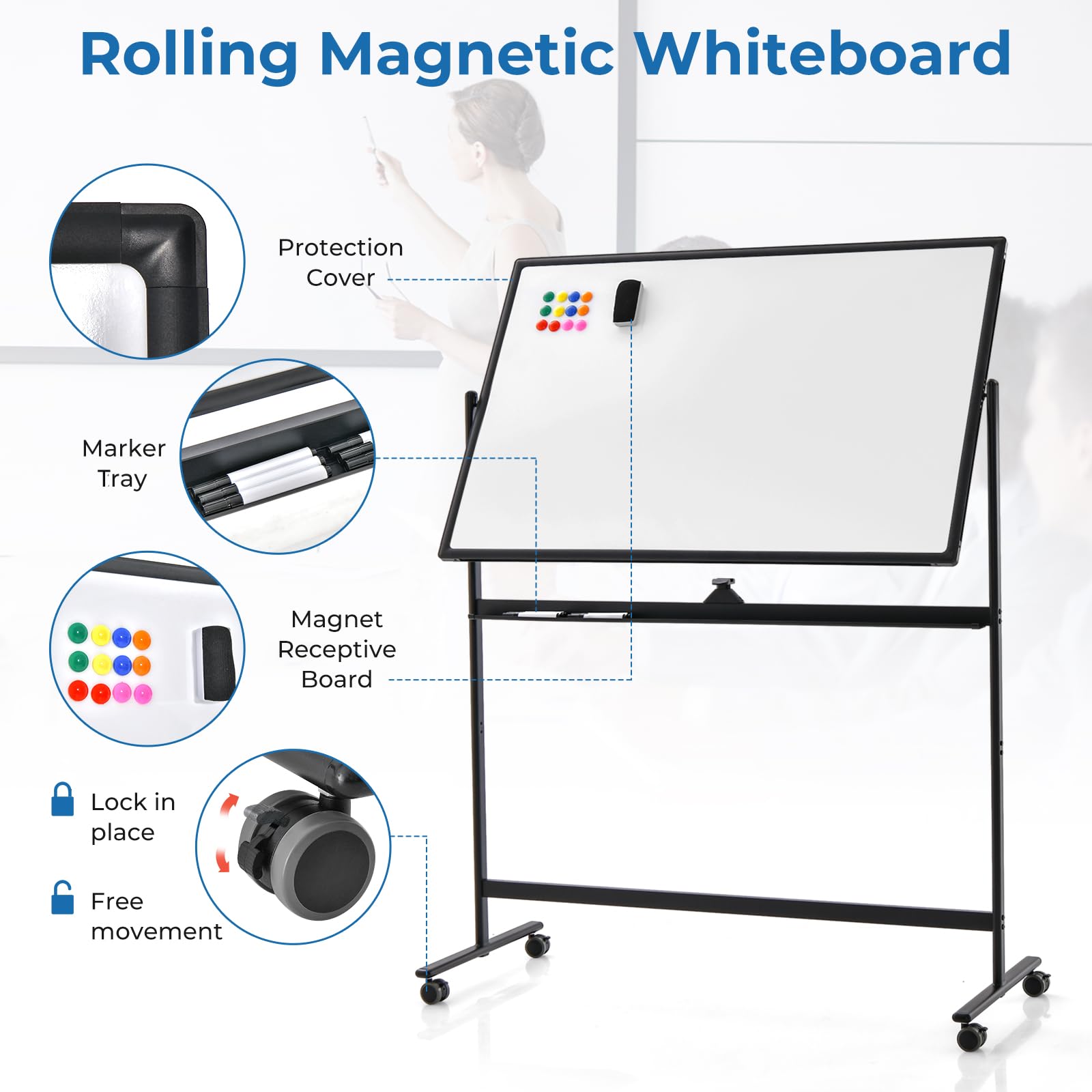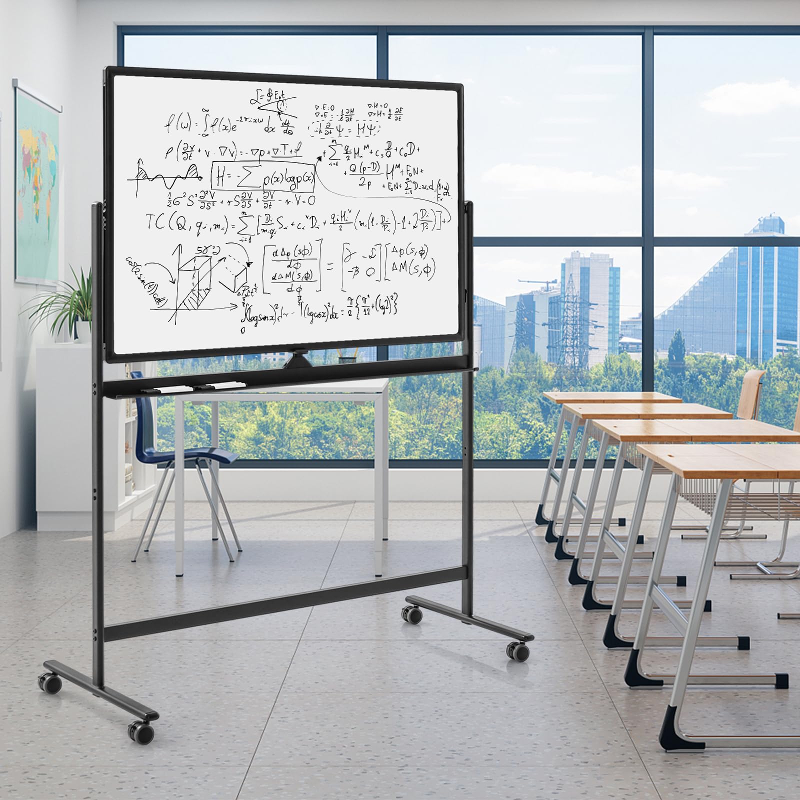 Double Sided Writing Space: Features a rotation construction that can effortlessly flips to the other side by pressing the locking button, this lockable double-sided 360° whiteboard will provide you with extra writing space. Moreover, the rotating stopper guarantees durability during writing.