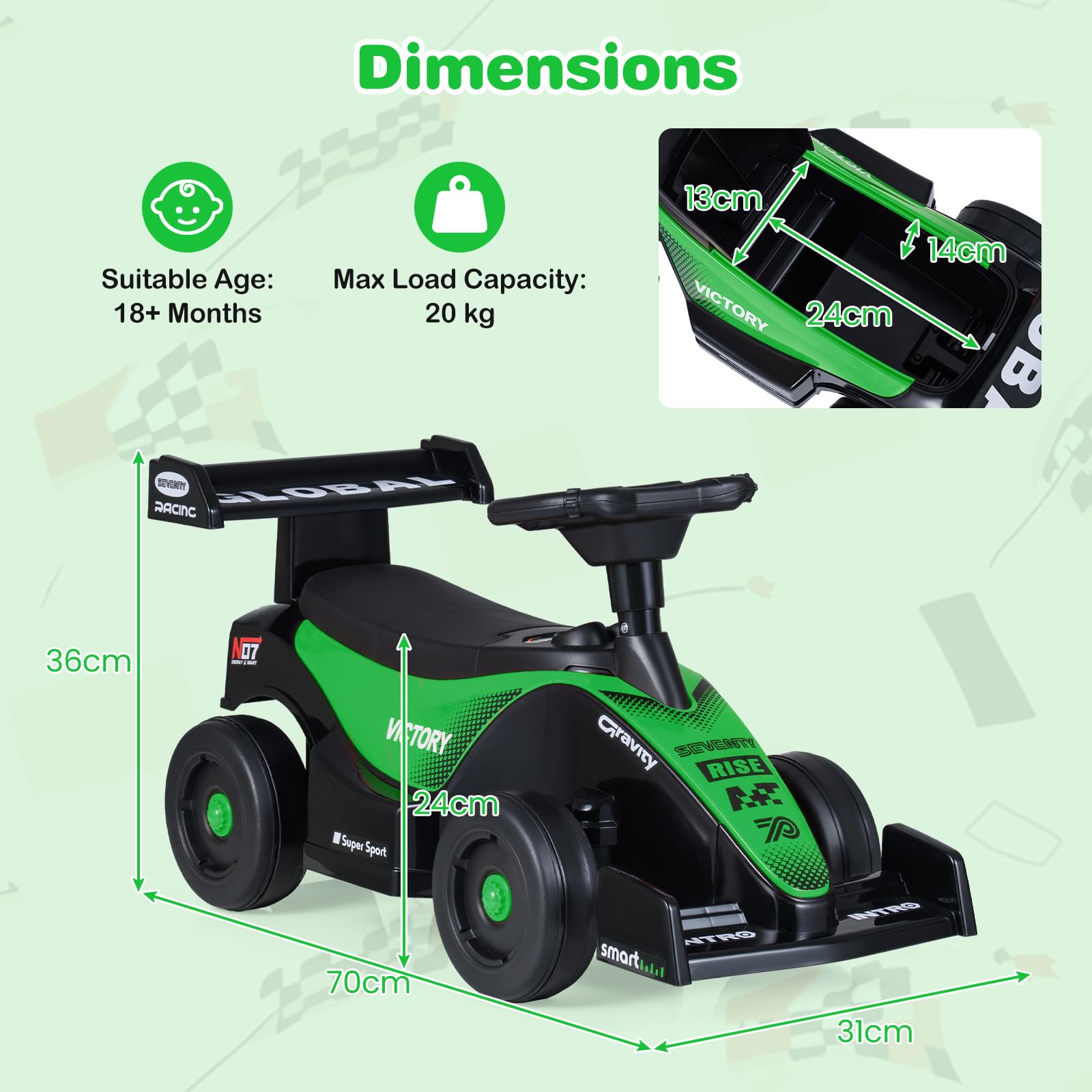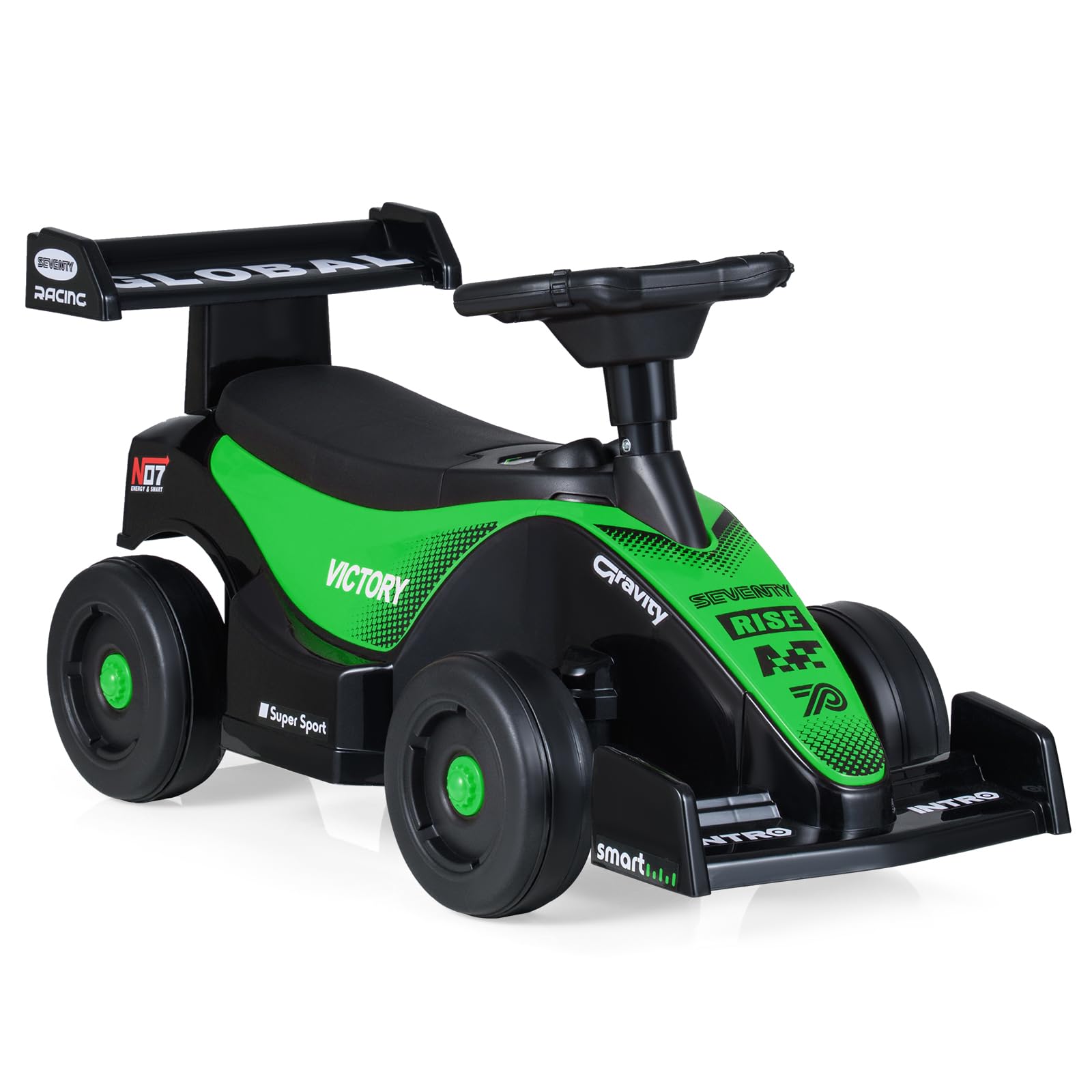 The foot-to-floor toy car features premium details designed for enjoyable riding. Its secret under-seat storage space is perfect for tiny explorers to carry favorite toys, snacks, or little treasures on every adventure. Safety takes center stage with a sturdy 4-wheel design, a 50° steering limit, and an anti-tipping block to keep your youngster secure. Equipped with wear-resistant wheels, this toddler sliding car glides effortlessly across rubber floors, wood, asphalt, and cement, ideal for both indoor and outdoor play. Suitable for children 18 months and up, this ride on toy supports motor skills, balance, and coordination development, making it an unforgettable gift for birthdays and holidays that encourages active, imaginative fun.