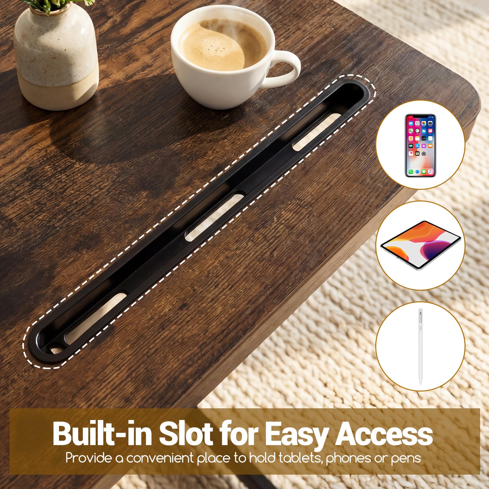 Wide Tabletop with Slot: The mobile side table provides ample space for laptops, cups, and other work essentials. Designed to hold tablets, phones, or pens securely in place, the table slot ensures hands-free viewing and easy access during use.