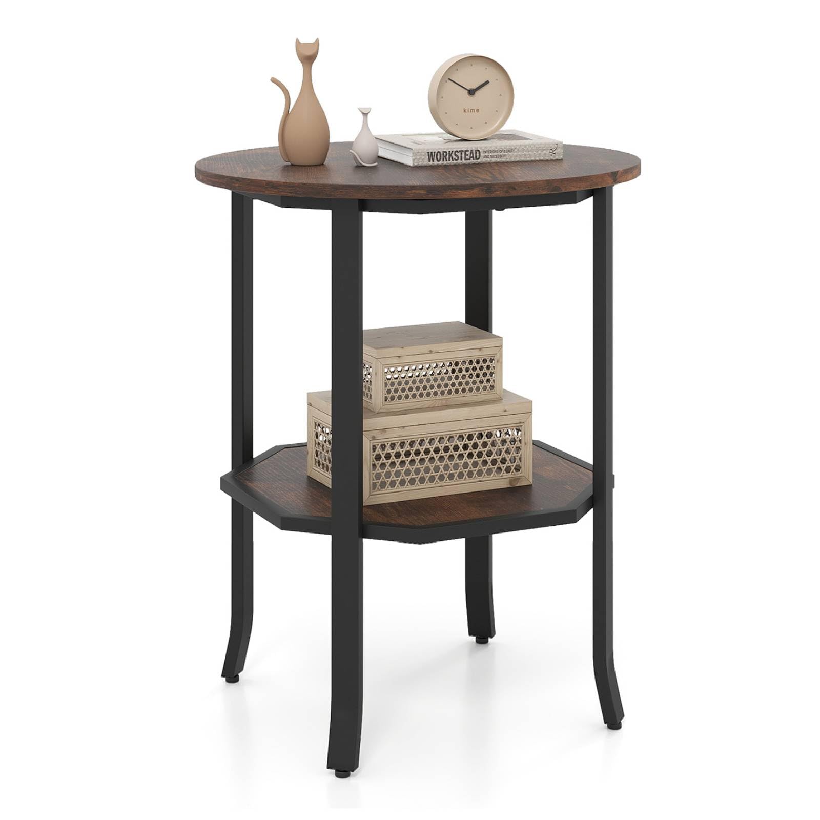 Round side 2-tier end table with storage shelf