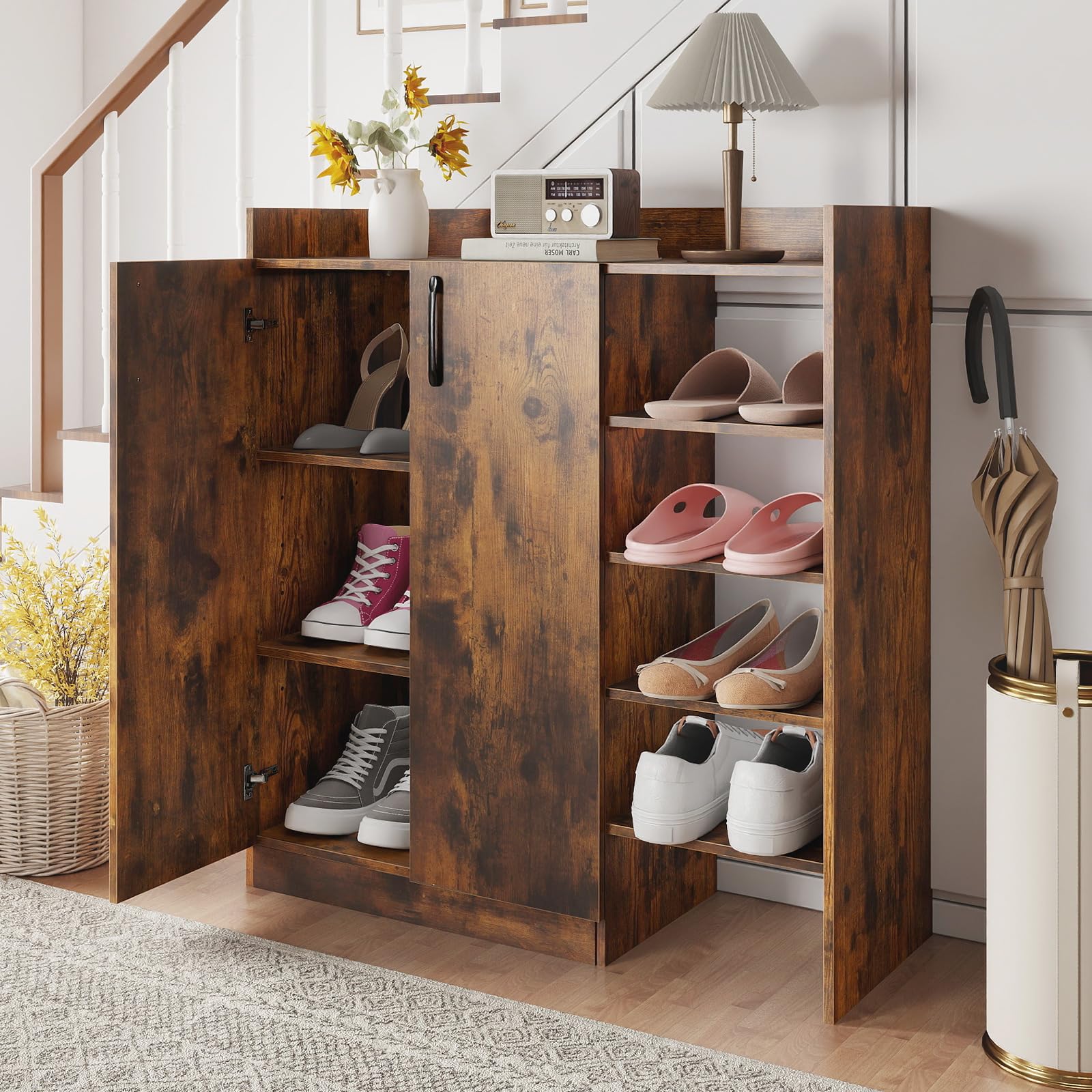 Versatile Home Organizer: More than just a shoe cabinet, this freestanding wooden rack is versatile enough for use in entryways, stairwells, closets, living rooms, or bedrooms. It functions well as everyday storage for shoes or other household items.