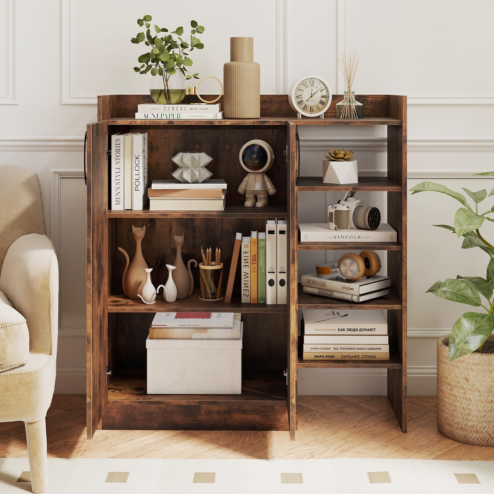 Customizable Inner Space: Inside the cabinet, you'll find 2 adjustable inner shelves with 7 height settings spaced 6cm apart. The 2 shelves are also easily removable to offer versatile storage options to maximize space efficiency.