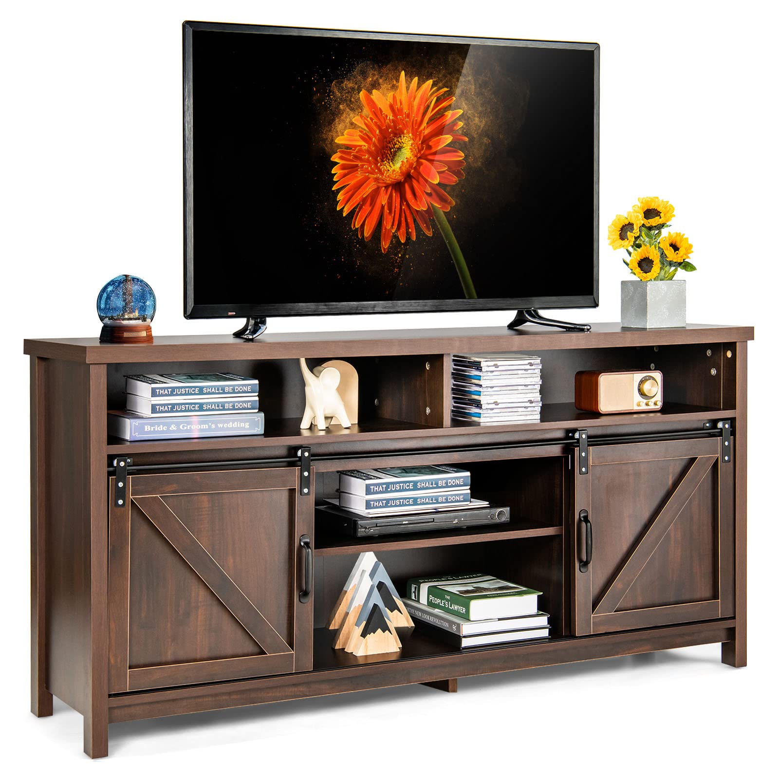 Sliding barn door farmhouse flat screen console for 65 inch tvs