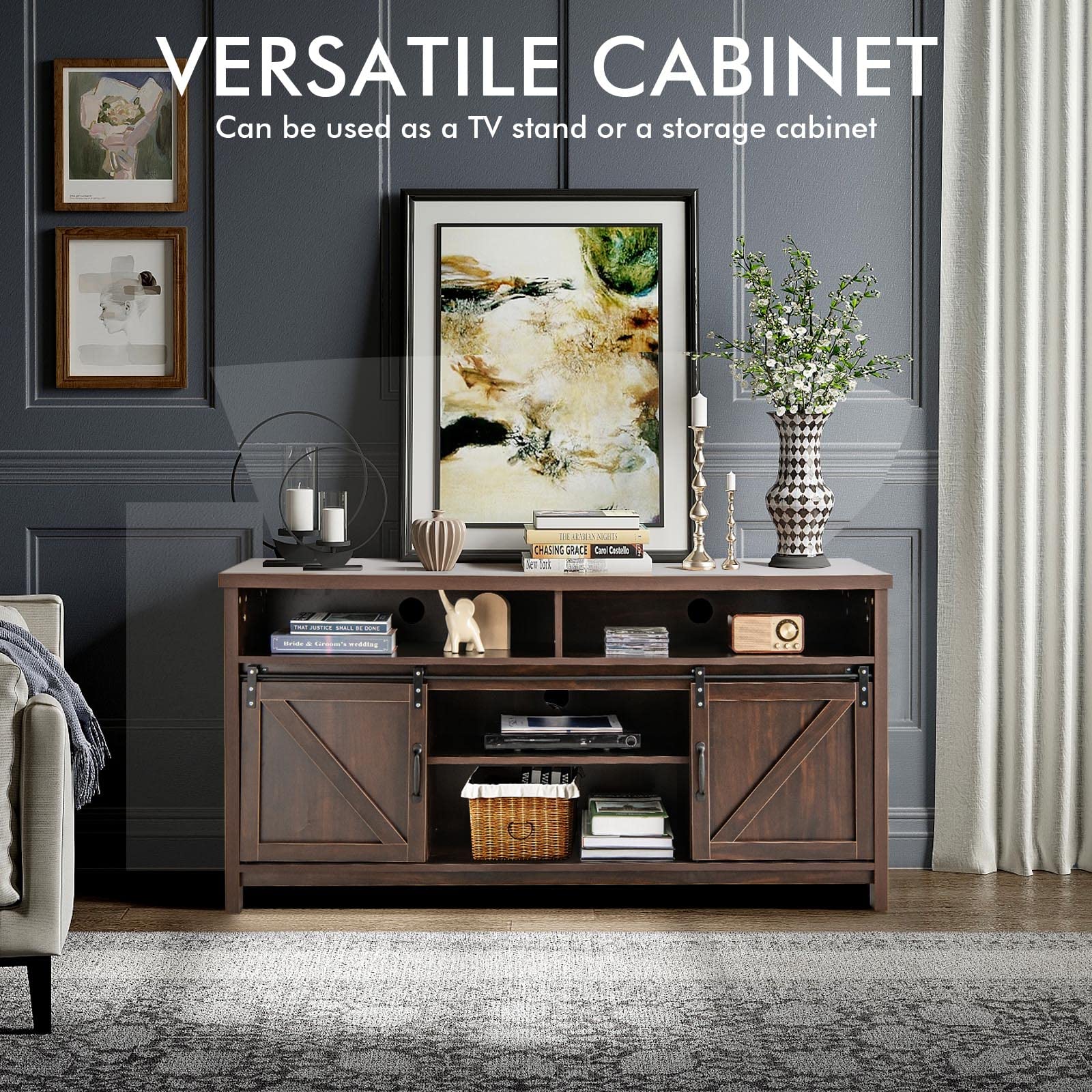 Sliding Barn Door Design: The TV console cabinet features sliding barn door design, which makes up a farmhouse look and provides concealed space for your private items. Meanwhile, the premium metal fittings, including the track and the pulley, ensure smooth sliding. So, you can easily put in or take out items.